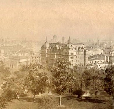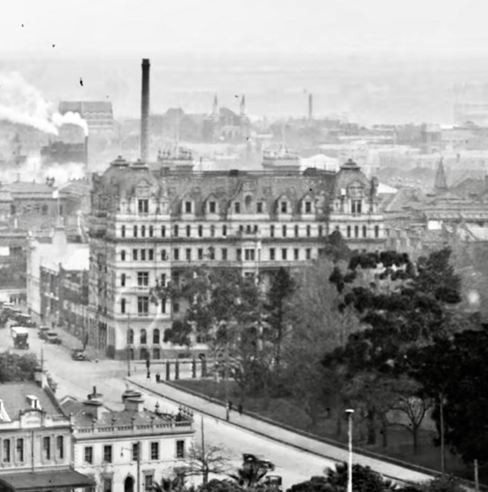 Designed by #OakdenAddisonAndKemp in ‘German Renaissance’ style, it was built to houses guests going to the #CentennialExhibition in 1888, but never opened. It became ‘residential apartments’ instead, until it was finally sold in 1929 to the Catholic Church as St Anne’s girls hostel. It was demolished probably in the mid 60s, and then a nice little modernist office block built, occupied by the Cancer Council from 1972, itself about to be demolished.