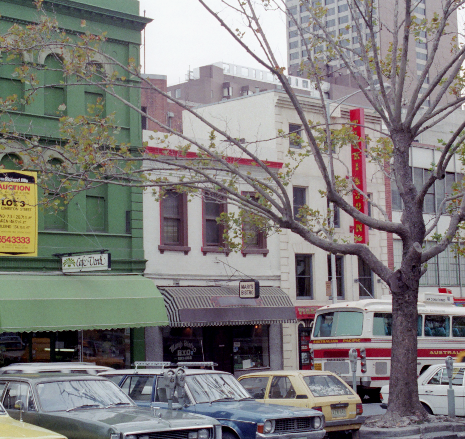 It’s a small thing but super annoying – this cute little survivor in Exhibition Street dates back to 1858, and was the (very small) Shakespear(e) Hotel from c1869-1890s, and altered possibly enlarged 1871, since then not much changed – but is now going to be almost facadism, actually 3 walls left-ism, with the floors, back wall and roof all demolished, and 3 new levels inserted, with rooftop. I did the objection for @melbourne_heritage_action, but turns out my words in vain because this just happened to be one of the few buildings in the CBD still governed by the old, much more vague heritage rules about preserving built fabric – the new rules would mandate the whole front section including roof be preserved. They do have to cut back the pergola a bit though. The great #paintedsign was revealed in the early 90s when the Victorian building next door was demolished (how did that get through?) for the car entry for the Paramount. Comparing two streetview images from 2009 and 2014 shows it has faded a bit. Great photo by #graemebutler for the CofM from c1984 shows the building next door, and the #mahstedt fire plan from c1910 shows it as a tobacconist, and might have had two doors.