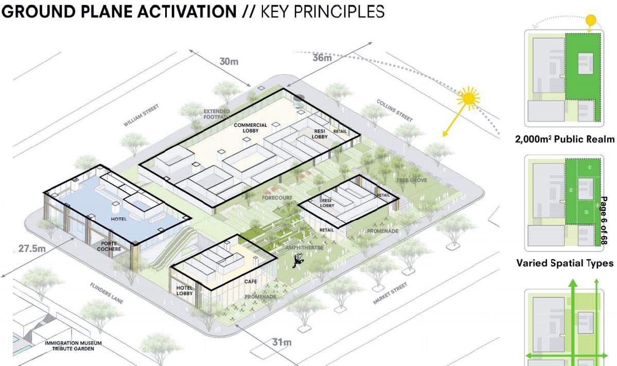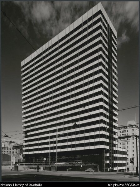 The site was once the western market, owned by the City of Melbourne, who allowed redevelopment in the 60s on a lease to National Mutual on condition that nearly half the site was open space. Then the Kennet era Commissioners sold it to them in 1994. Nobody thought to protect the open space through planning requirements, and in about 2014, the first redevelopments partly filled it with a new building. Then somebody realised they could dem the existing building, and go to town, proposing a bit of plaza in return for height, breaking the no-overshadowing the river rule – ex Mayor Robert Doyle thought that was okay, but ex Planning Minister #MatthewGuy said no, surprisingly. Then #WoodsBagot and #ShopArchitects came up with this lump, but initially with a smooth slick finish that was better than what they’ve actually built. I would say that I’d prefer the tall tower, but really I’d prefer the National Mutual was still there (and that the marble hadn’t fallen off), or at least a new tower with the same plaza. First image from #architectureau, others I’ve collected from forums and planning docs since 2014.