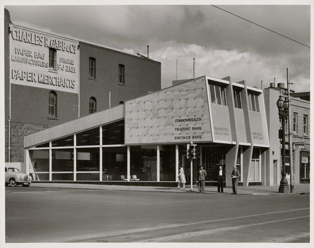 The ‘featurist’ bank from Robin Boyd’s 1960 book The Australian Ugliness looks suspiciously like the 1956 Commonwealth Bank on Elizabeth Street, still there, painted over, but recognisable, and #heritagelisted. Would Boyd have eventually changed his mind if he’d lived longer than 1971?