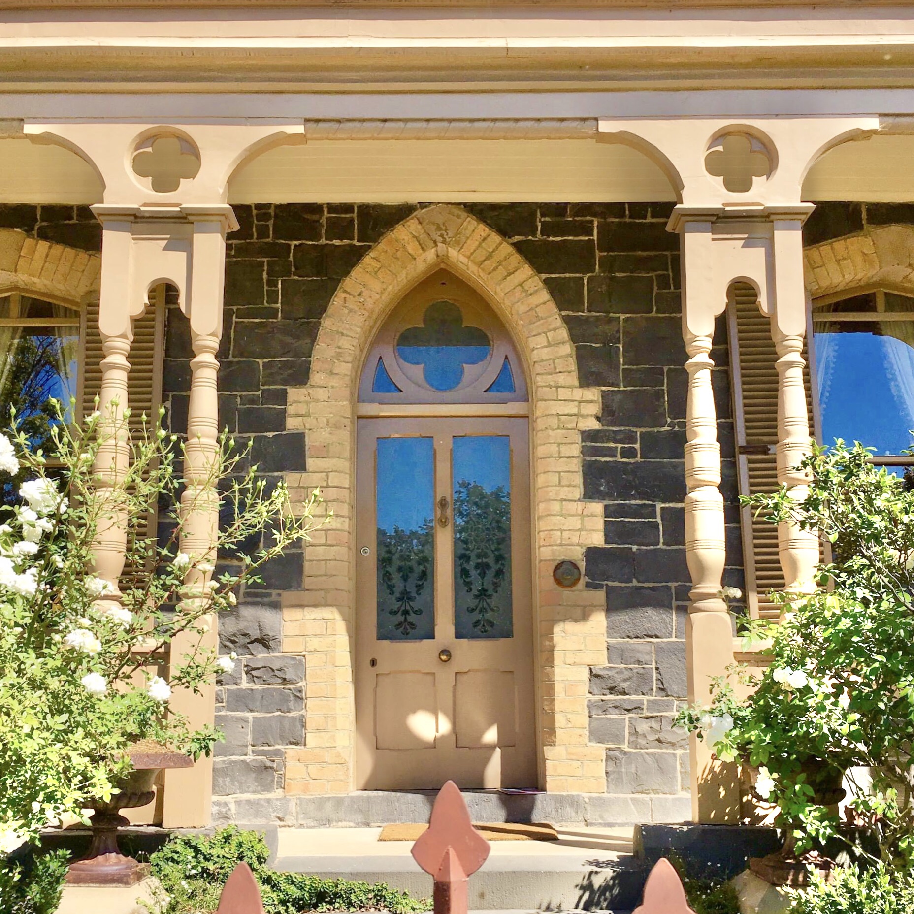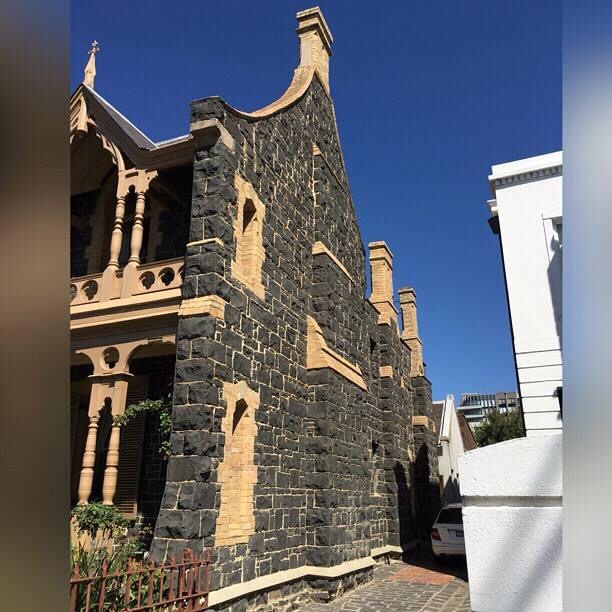 Fabulous #GothicRevival house in #EastMelbourne, designed by #JosephReedArchitect in 1861. Shows how Reed could go from classical to gothic (and later polychrome brick Romanesque) with ease. (eg #StateLibraryVictoria, #MelbourneTown Hall, #WesleyChurchMelbourne and #RipponLeaEstate). Built for Deputy Surveyor-General, Clement Hodgkinson, who designed a few things himself, like the 1859 layout of the #FitzroyGardens, 100m away, and the grand circus of #StVincentPlace. This house is described as #picturesque, but actually it’s #symmetrical, so I’d say that it had a picturesque roofline, with those prominent side #gables with chimneys (swipe to see), and the huge gables that are actually part of the heavy timber verandah (with fat turned timber posts, popular 40 years later). This is a very Australian version of #GothicRevival.