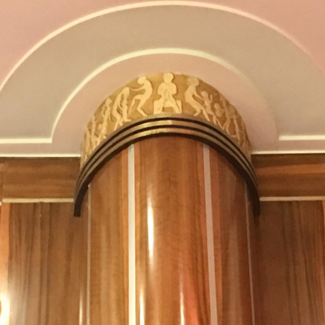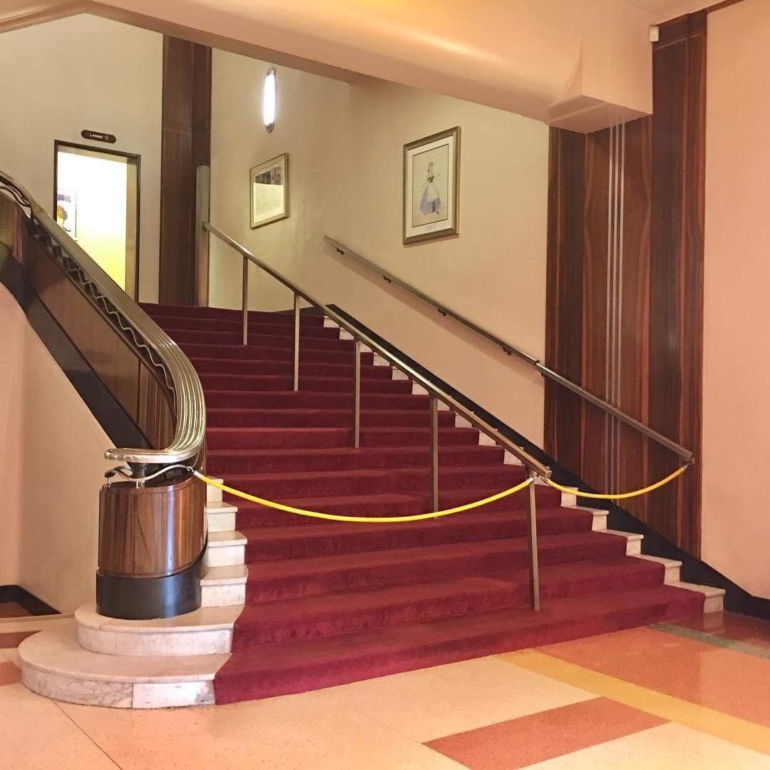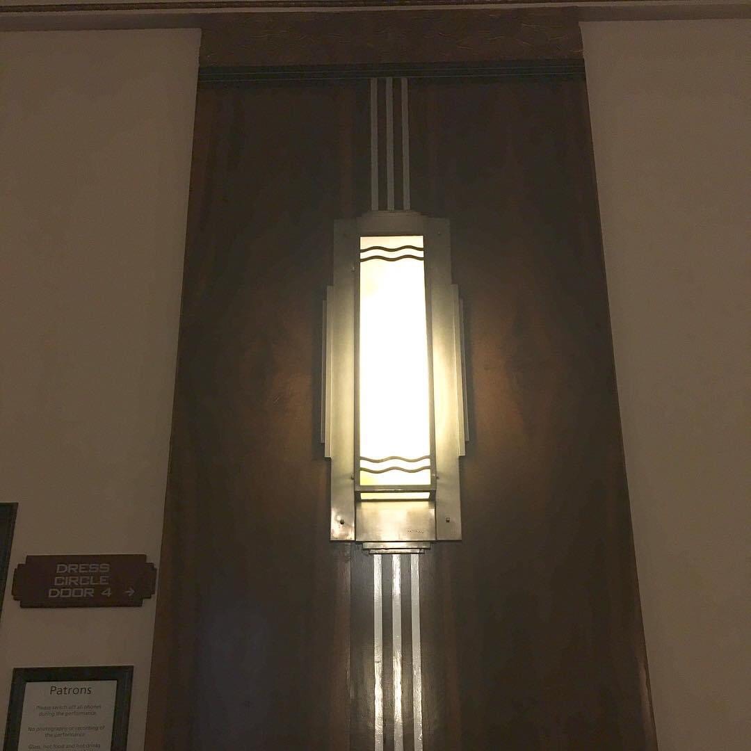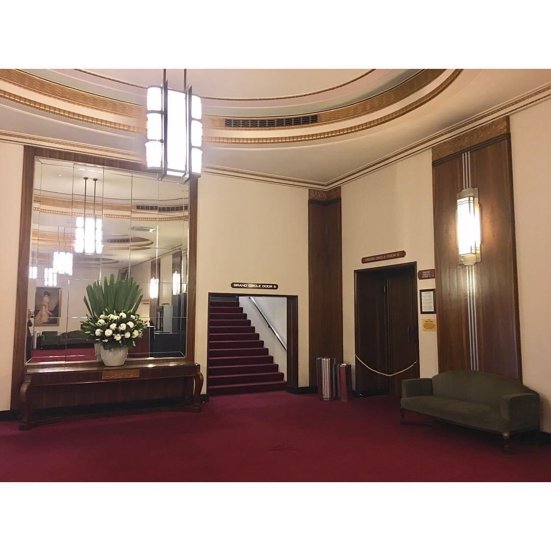 The 1934 lobbies at #HerMajestysTheatreMelbourne are a bit on the plain side imho; nice details, but there’s lots of blank wall between them. [found some original photos, the walls seem to have had a coloured textured finish, plus the nice light fittings and flowers made a difference]. Just noticed the dancing figures at the top of the pilasters, you have squint.