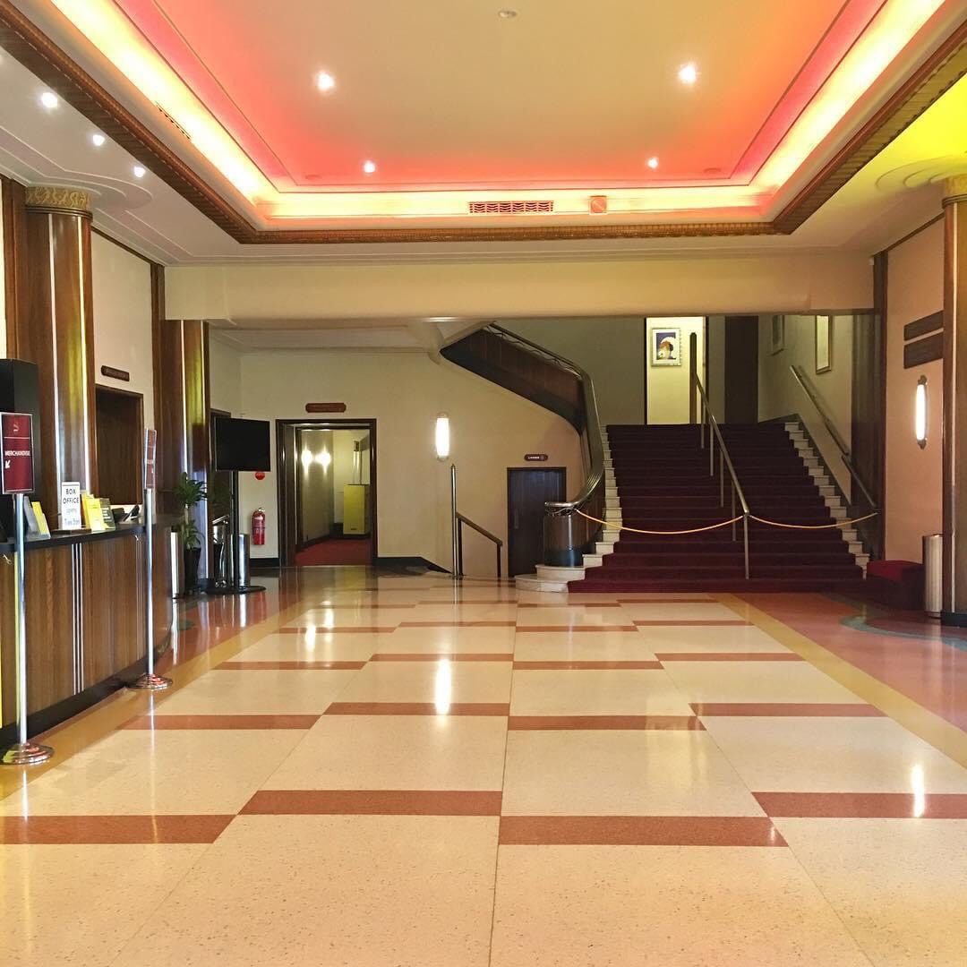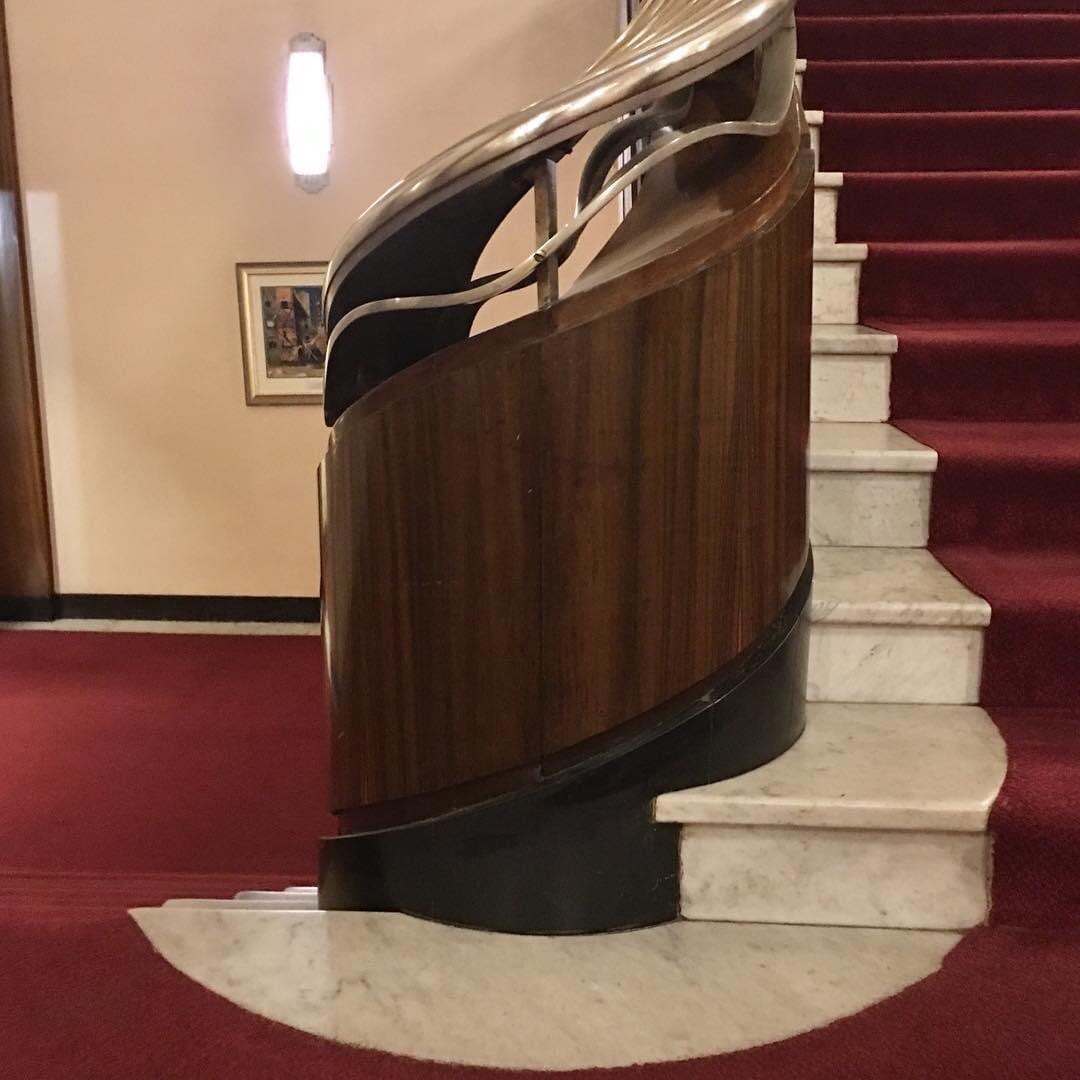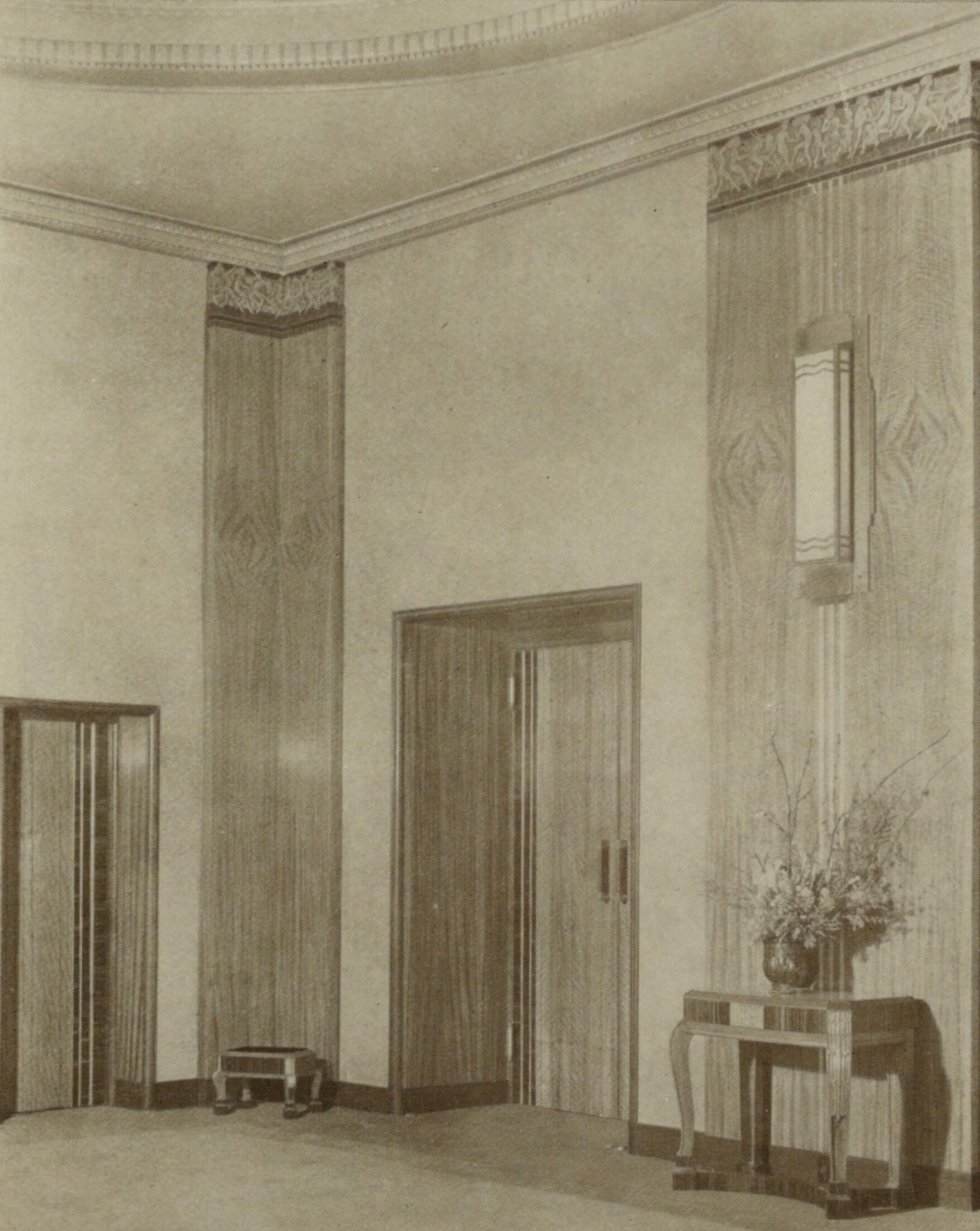 The 1934 lobbies at #HerMajestysTheatreMelbourne are a bit on the plain side imho; nice details, but there’s lots of blank wall between them. [found some original photos, the walls seem to have had a coloured textured finish, plus the nice light fittings and flowers made a difference]. Just noticed the dancing figures at the top of the pilasters, you have squint.