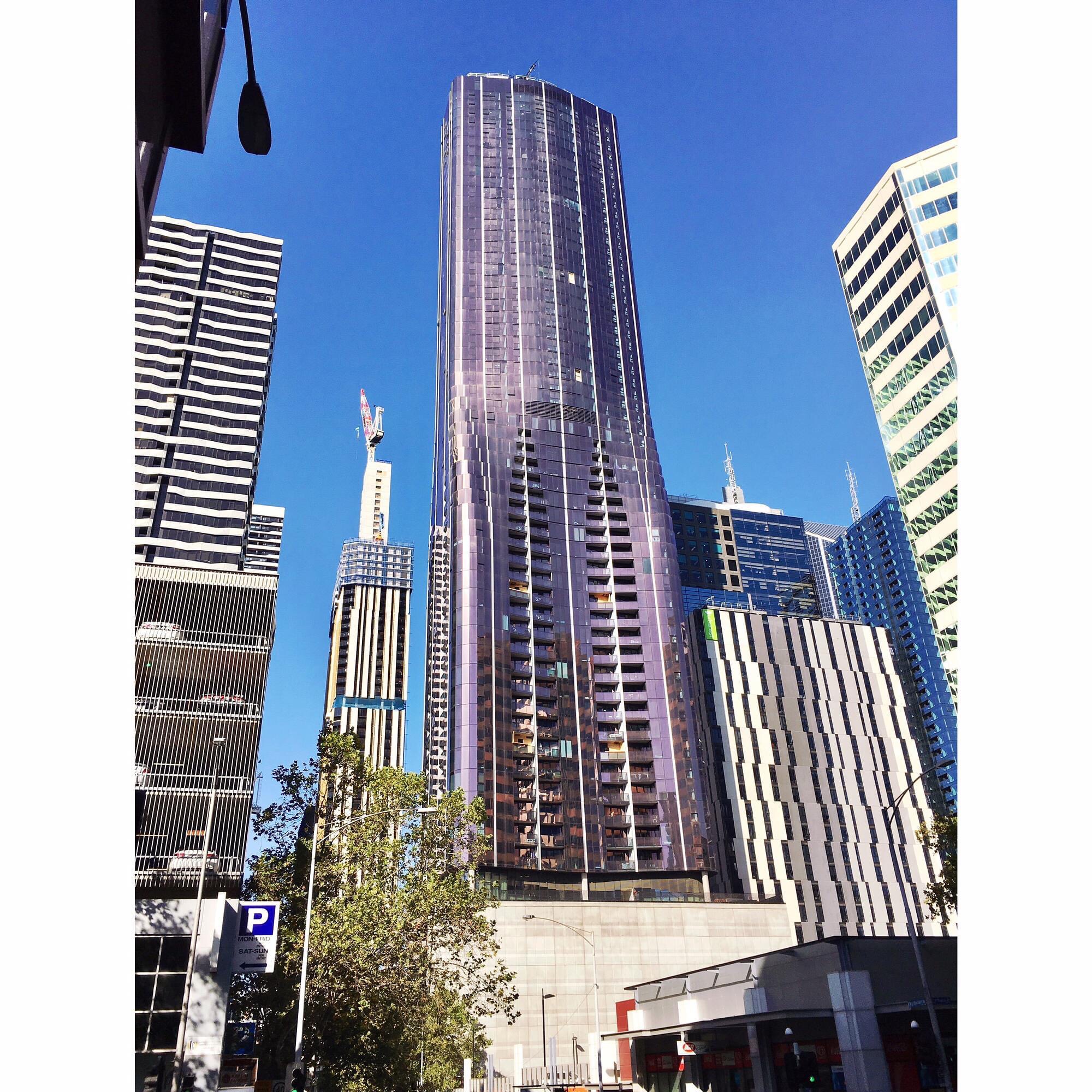 The the 60 storey purple goodness of the #EQtower in #ABeckettStreet, another #ElenbergFraser. Don’t mind this one, it’s even got quite substantial setbacks and a proper podium – just not really a fan of fatter bases, or those balconies formed by just leaving out a pane of glass, but it’s slick, though not a sparkly as I hoped (wrong time of day). I hadn’t realised, but a lot of the glass is actually backed by wall, maybe conc, maybe just plasterboard. At least that means less thermal sun load.