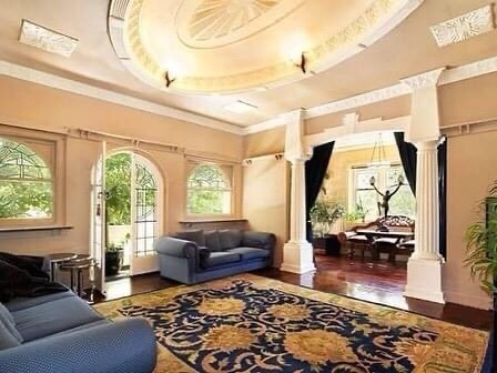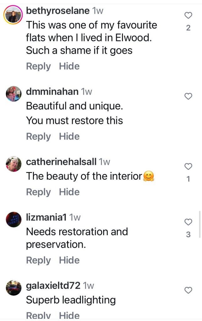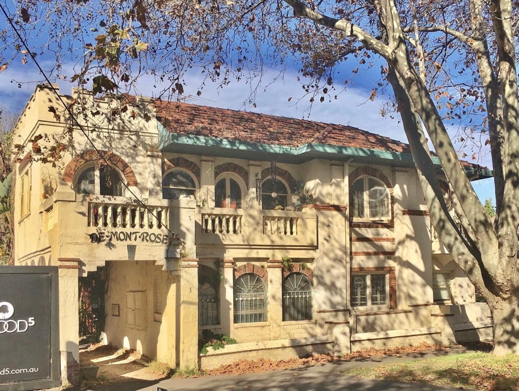 De Mont Rose, 1 Broadway, Elwood, 1934, an early project by #EsmondDorney, who would go on to do many like this, and many uniquely styled Art Deco blocks, in Elwood and adjacent burbs, and then totally unique houses in post WW2 Hobart. This one is 1920s eclectic, a bit Tudor, a bit Spanish, a bit wacky, and a bit #WalterBurleyGriffin, for whom he had worked in the late 20s – the angular balusters are sort of WBG. Dorney started out doing apartment conversions on relatives’ houses in Elwood, and this looks like it’s built in the front garden of an earlier house. The upstairs front flat is fabbo inside ! And there’s a lovely fountain courtyard.