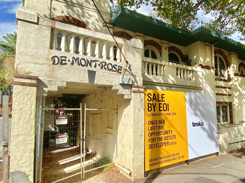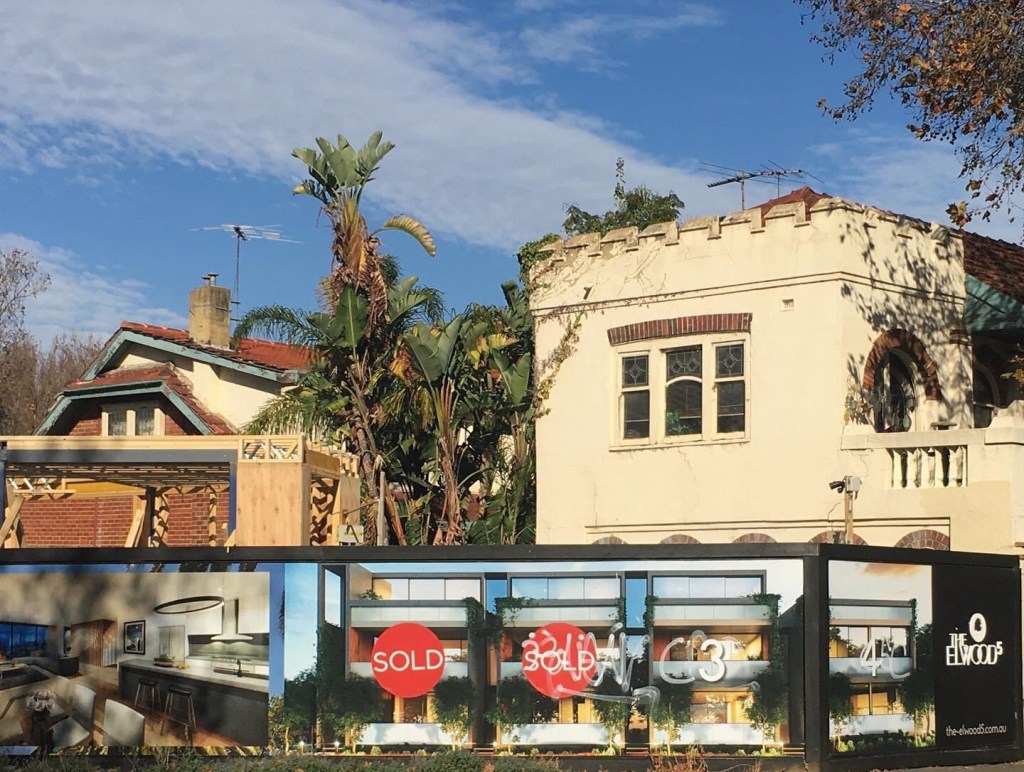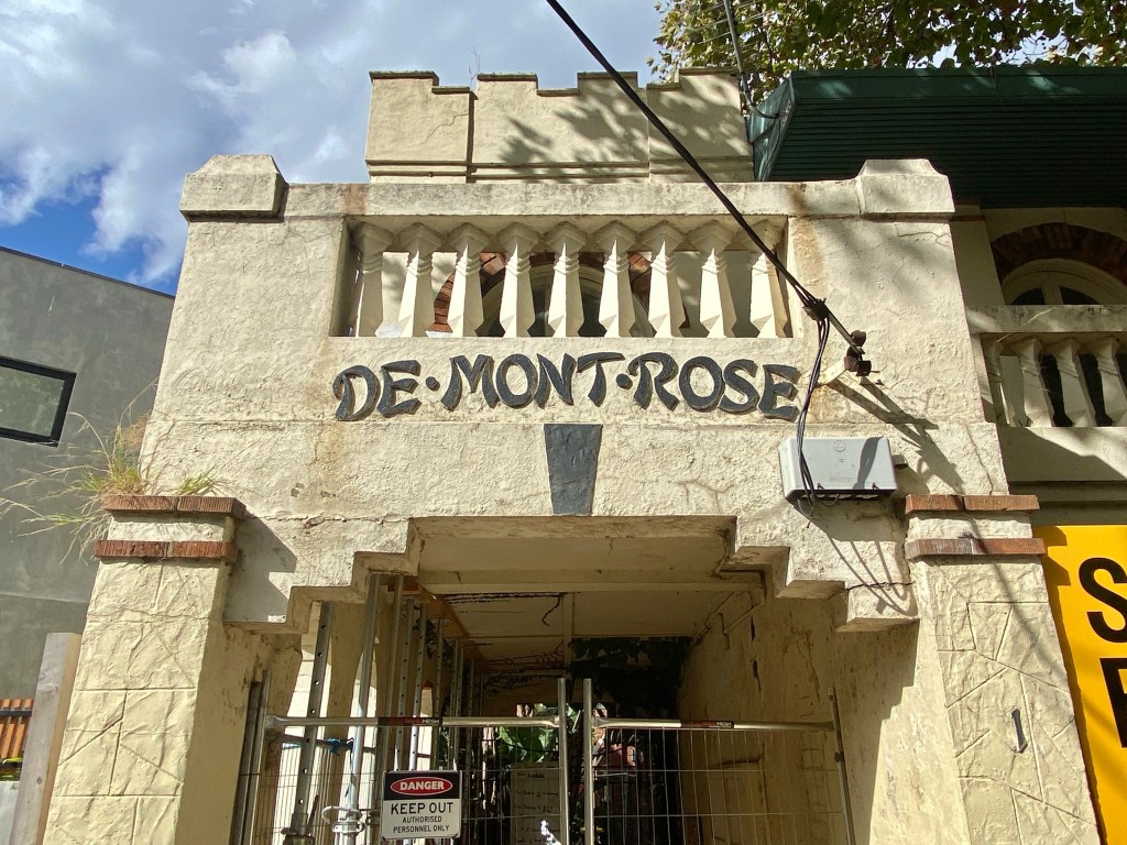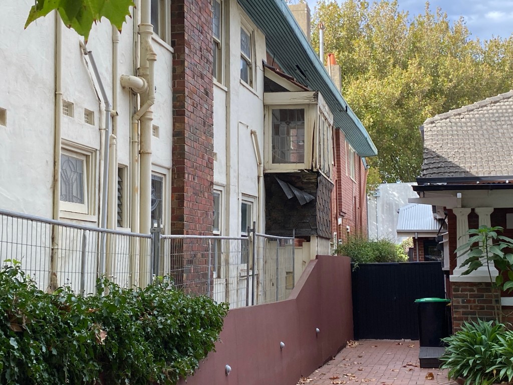 It’s up for sale – as a development site ! It’s definitely heritage protected, but it’s clearly very cracked up and abandoned, so maybe the owner has already got some kind of approval from the City of Port Phillip (update : none I can find). But then, I’m sure it’s repairable, if costly. Some townhouses have been built next door, don’t know if that’s made it all worse.