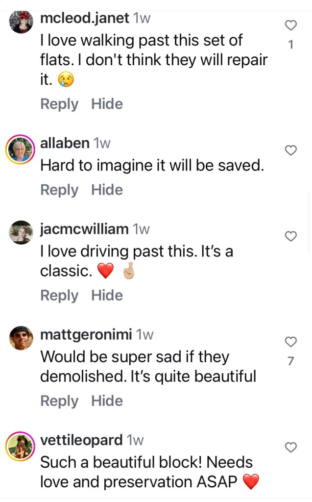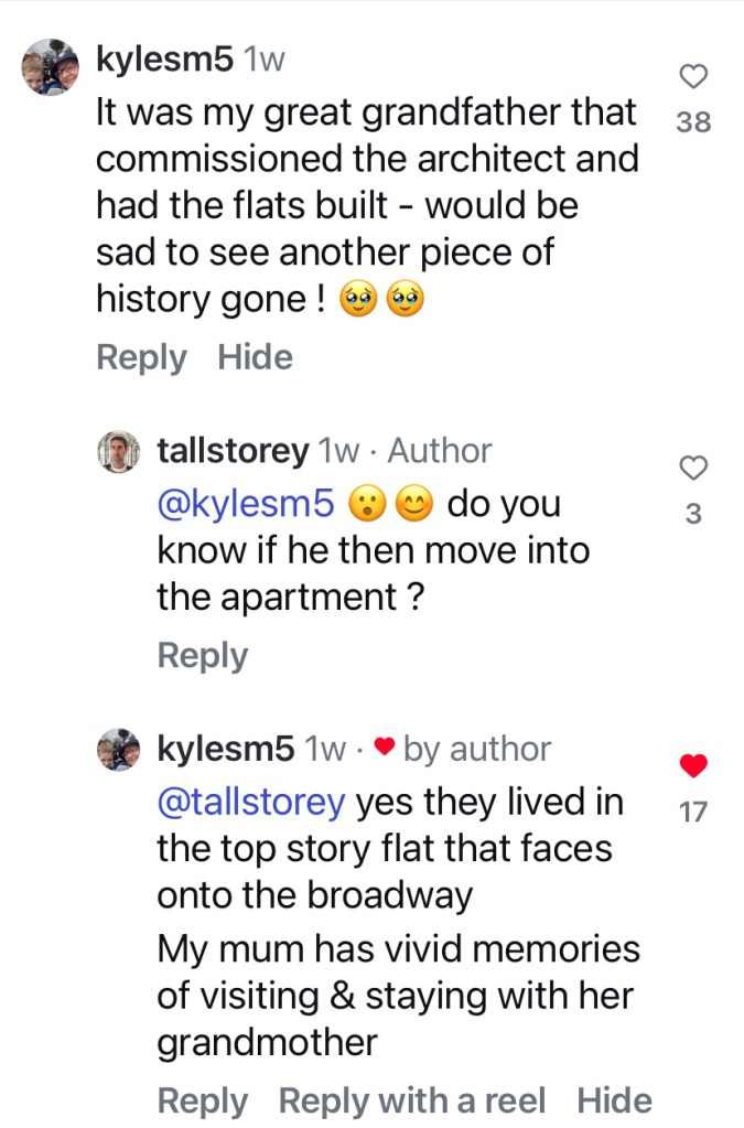 It’s an early work by J Esmond Dorney, from 1934, placed in front of a house that was only 8 years old by the owners, maybe they went onto the nice flat ? (Update : the great grandson says yes, thru moved into the fab flat!). Entry was via that archway to a nice courtyard, very Melrose Place (if you remember that series). Thanks to @bslowb for alerting me.