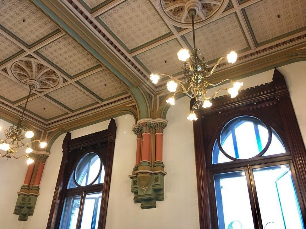 Interiors of the #NationalMutual building, SW cnr Collins & Queen – the corner built 1893, doubled in matching style down Queen Street in 1903 – the insurance hall in that part is very elaborate ! Hard to see through the door and above some crazy curvy insert office space thing. Seem to recall it was always this interwar cream and gold colour scheme. The earlier 1893 hall on the corner is much plainer but still nice. A great survivor.