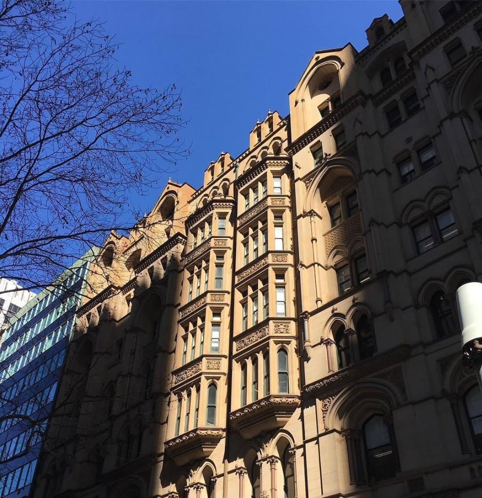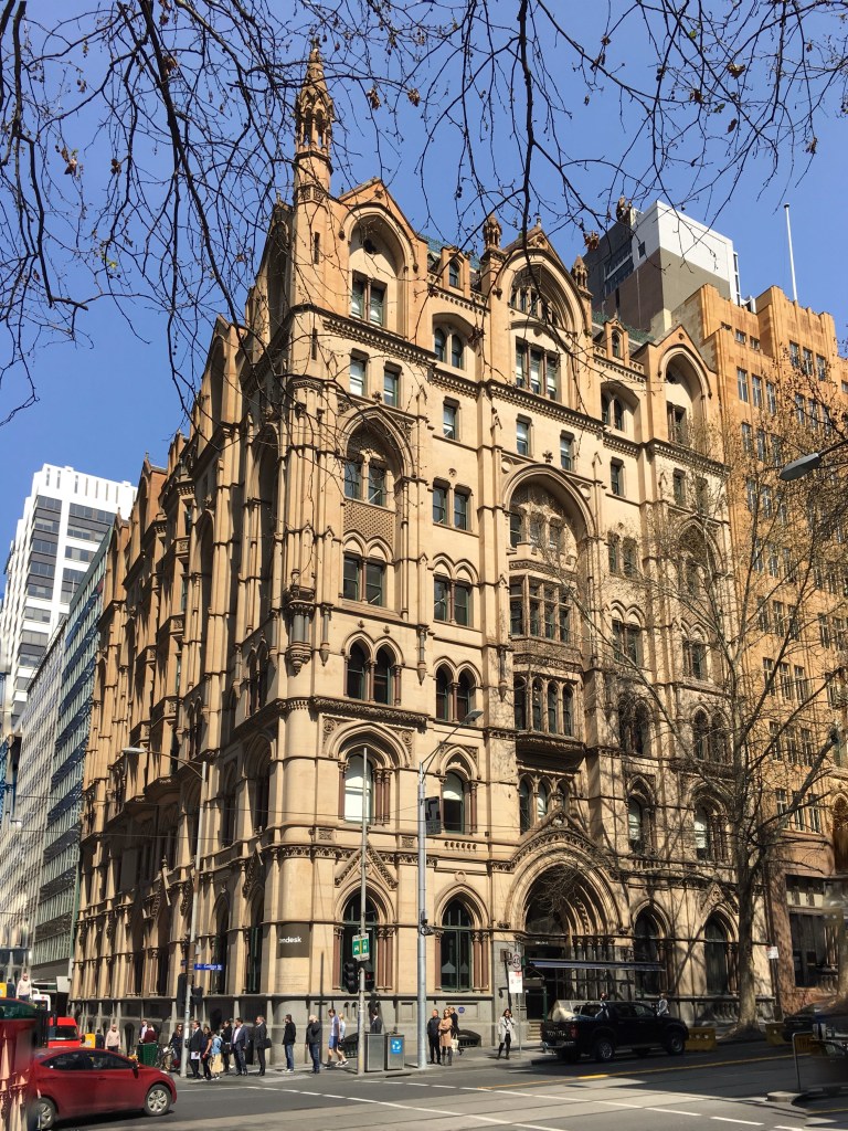 This #massiveedifice of stonework was built on the corner of Collins & Queen Streets for National Mutual in 1891-3. Originally it stood alone and very vertical, since the queen street side was only 3 bays – it was more than doubled in matching style in 1911-13, designed by Gibbs & Finlay.