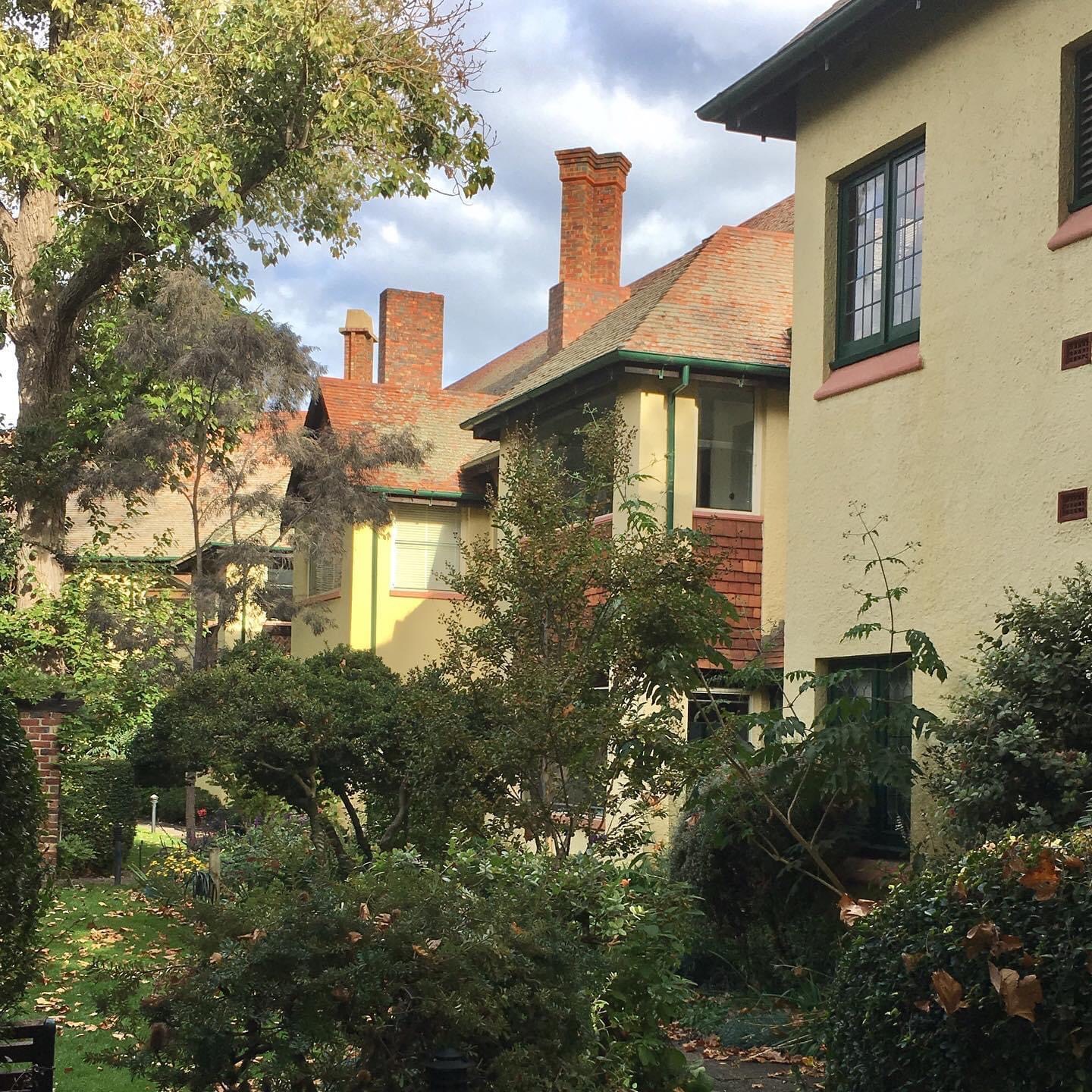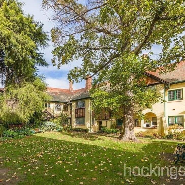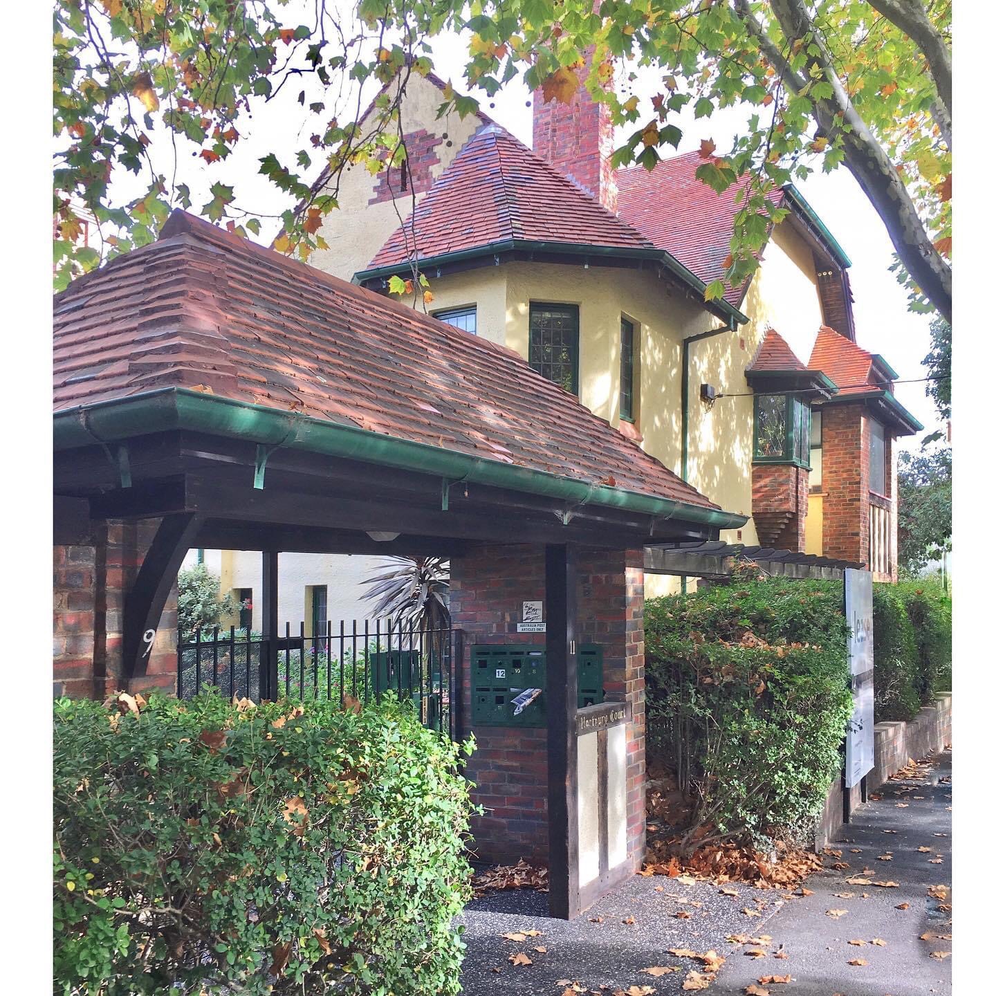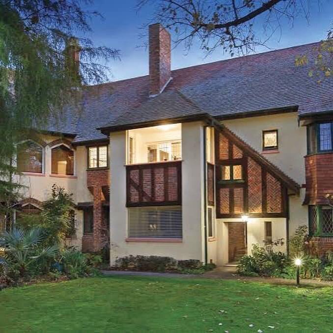 Repost from this day 2019: #HartpuryCourt, in Milton St #Elwood, #ArthurPlaisted, 1923 – a very nice and relatively early example of the interwar #OldEnglish style, otherwise known as #TudorRevival. #HalfTimbering infilled with brick, steep roofs in flat tiles, tall chimneys, window bays in #leadlight, delightful. Also, why don’t they build flats with generous shared gardens any more ? This was built in the garden of a #VictorianMansion, still there, converted to flats. Last 4 photos from real estate sites.