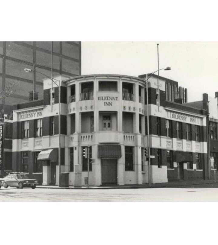 A lot of #ArtNouveau details under the cream paint on the 1915 #KilkennyInn, cnr Lonsdale and King, probably showing the hand of #RobertHaddon, doing work for #SydneySmithAndOgg, who did many many pubs 1900-1920s. The circular open corner is also very unusual – and about all that would be left if the current quite dull office tower proposal gets approved ! Which it shouldn’t, since the newish #heritageguidelines clearly say no facadism and in fact for ‘significant’ graded places like this nothing much should be demolished ! Even if was contributory, they’re supposed to keep a room depth or 8-10m, not just front walls and what looks like just the verandah and the towers. Also, there’s the nice Paramount House next door, built in 1929 for the film company, and proposed for heritage listing (if this doesn’t go ahead). The best pics I could find are actually streetview, the B&W from @library_vic 1960s, and the plans by @coxarchitecture from the application.