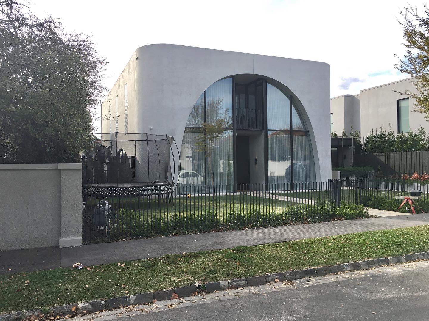 I like this ! A bold simple gesture. Mind you you’d have to live behind curtains, but im sure there’s plenty of family living space at the back facing north. It’s only recently finished. I don’t know who the architects are. I also like that the kids trampoline is in the front yard, and there’s no huge front wall/fence. Leeton Pointon Architects