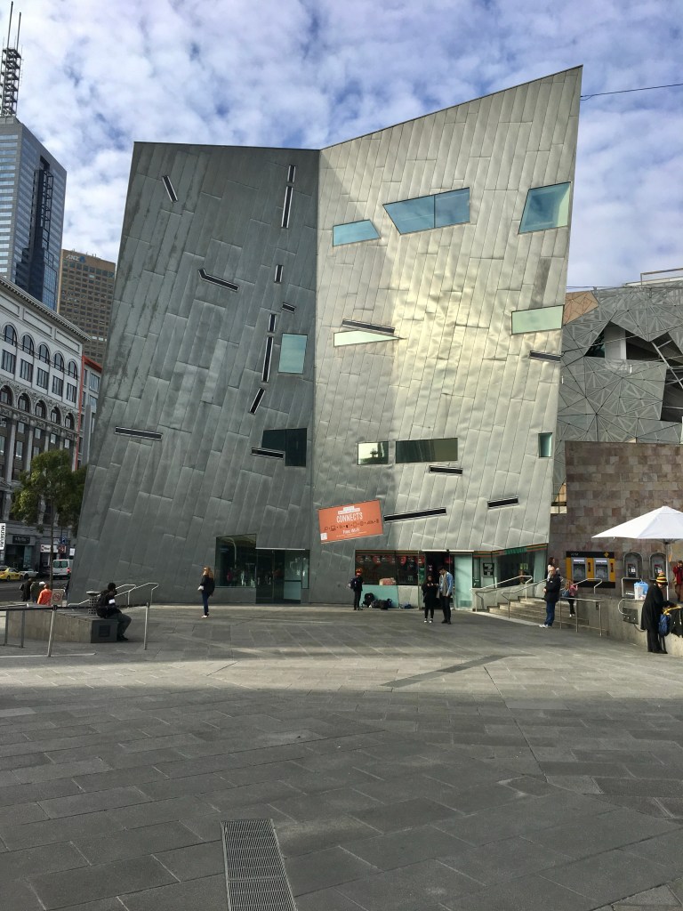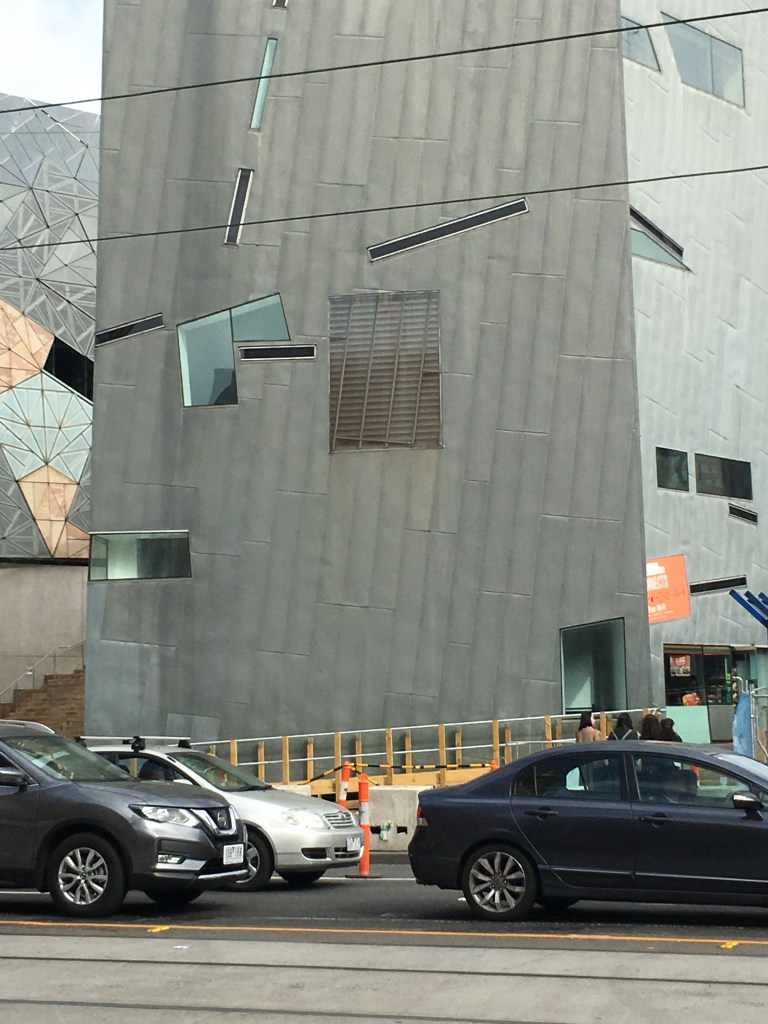 I think the paving at Fed Square is very attractive, though it’s been criticised as not only anti skateboards but bad for the less abled. I had some idea it was an artwork, and this is what I found :