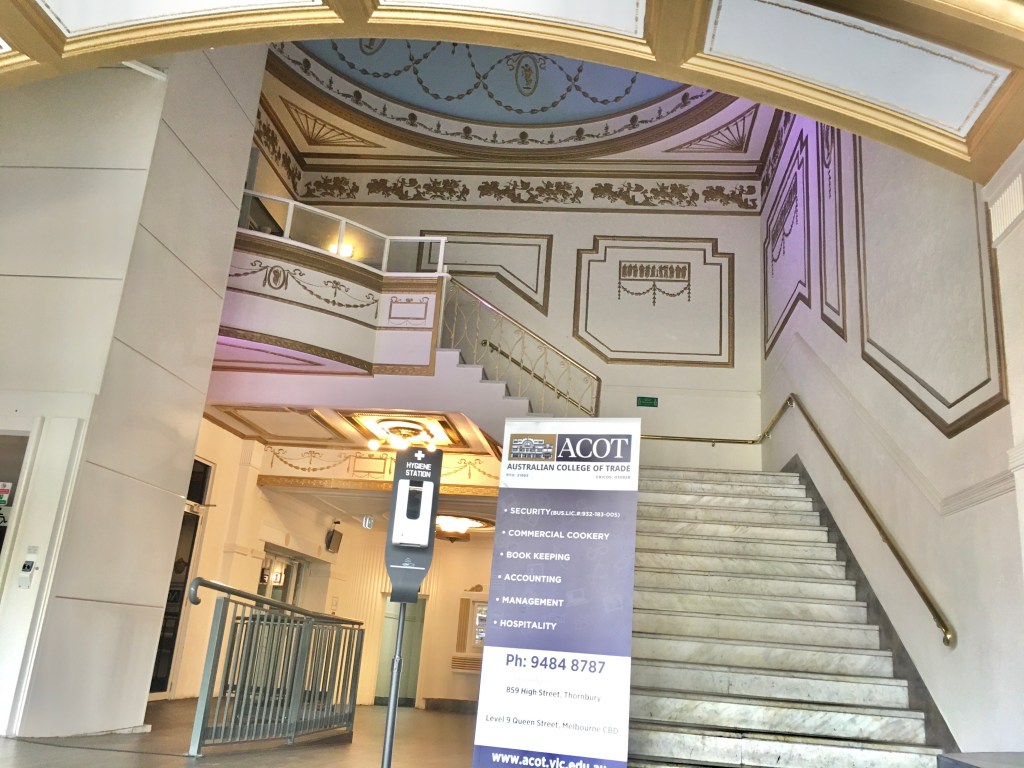 The #ThorburyTheatre is a live entertainment venue that was actually built as a theatre ! A cinema anyway, and is in large part intact, one of the most intact left in Melbourne that doesn’t have any interior protection. Built in 1925 (and possibly a rebuild of an Edwardian era hall) it was pretty big, and apparently designed not by an architect but by a plaster specialist Sam Millsom, and it shows – so much delicate #RobertAdam decoration. The lobbies are intact, as well as the upper part of the auditorium. After it closed in 1967, it became a function venue, the Catania Ballroom, when the space was divided by a new floor. In 2010, it changed direction into a music (and wrestling) venue, hopefully to stay that way for years to come ! First two images mine, rest from their website and Cinema Treasures.