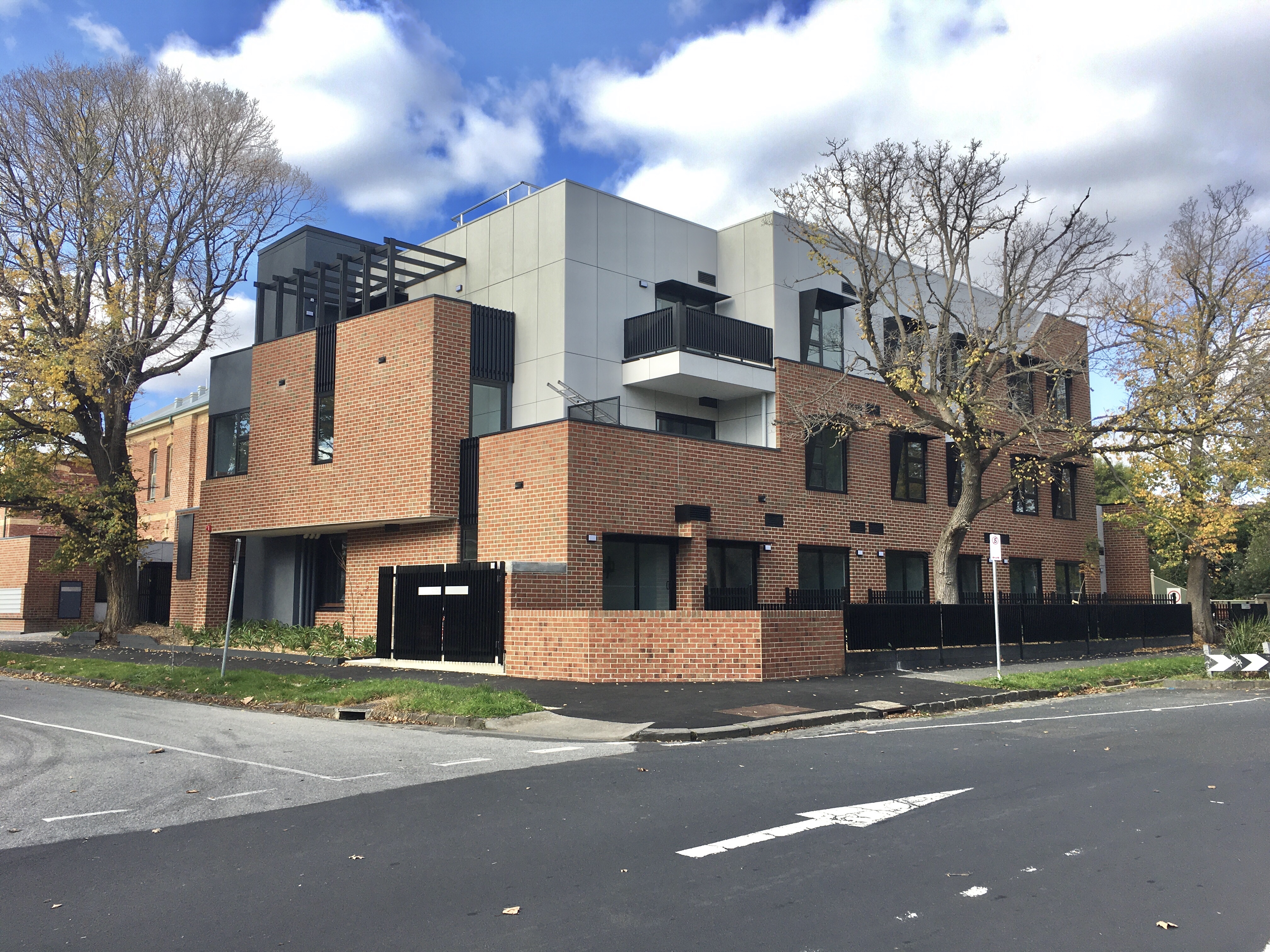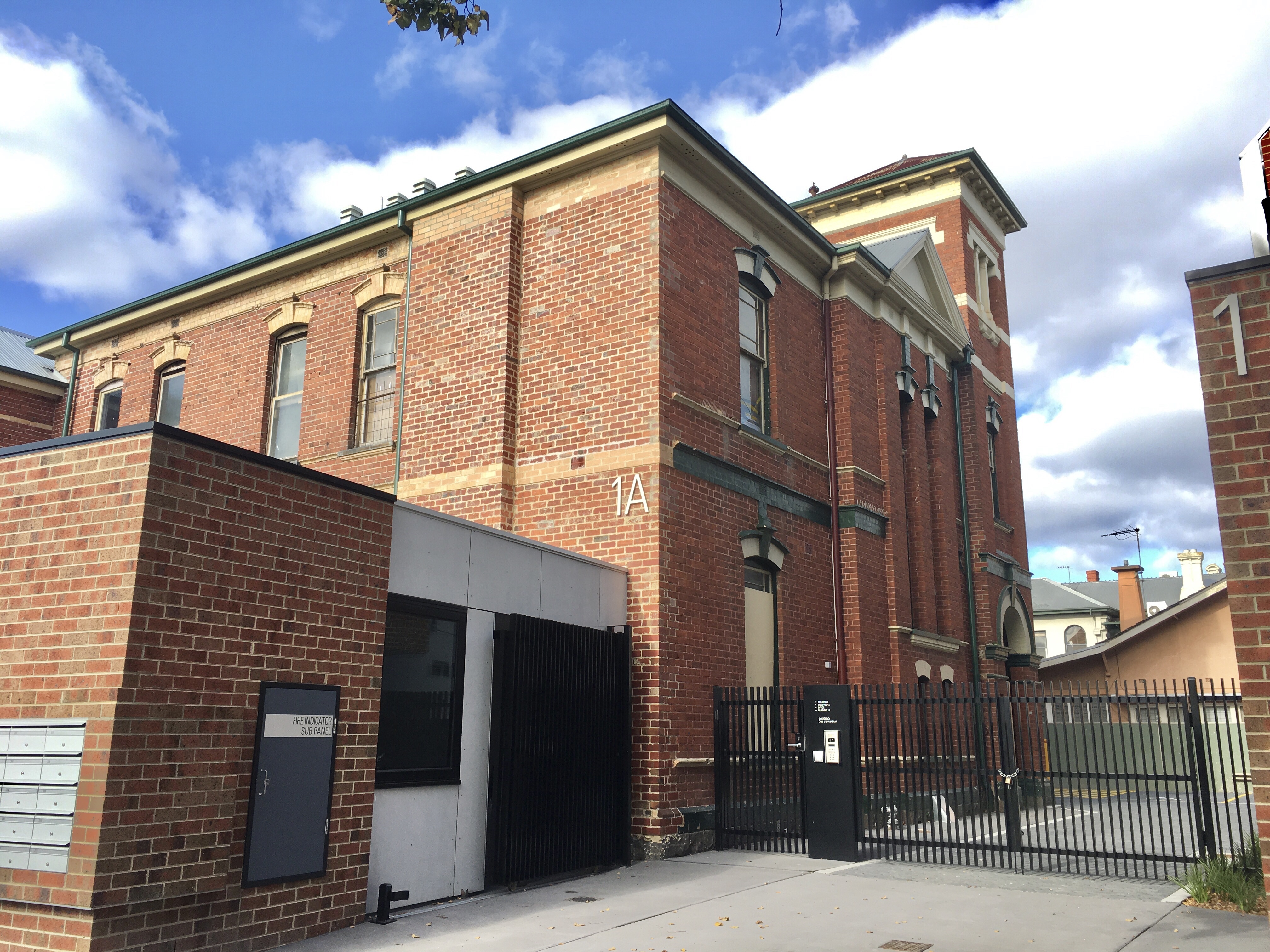 It had been crisis accomodation, and that’s what the new thing is- I suppose because it’s impossible to get permits to build a use like that, so they just rebuild existing sites. It’s not bad, not too busy, not too boring, I do like the use of textured brick- but perhaps it could have had an opening on the other side ? So you could see the tower, instead of jut the rear wing ? Also, the drive in entrance looks a little jaily- tall fence, guards office; I’m super you need security – but then on the other side there’s just low fences to lounge room windows ? The initial architects were @mgsarchitects, but it got handed over to someone else.