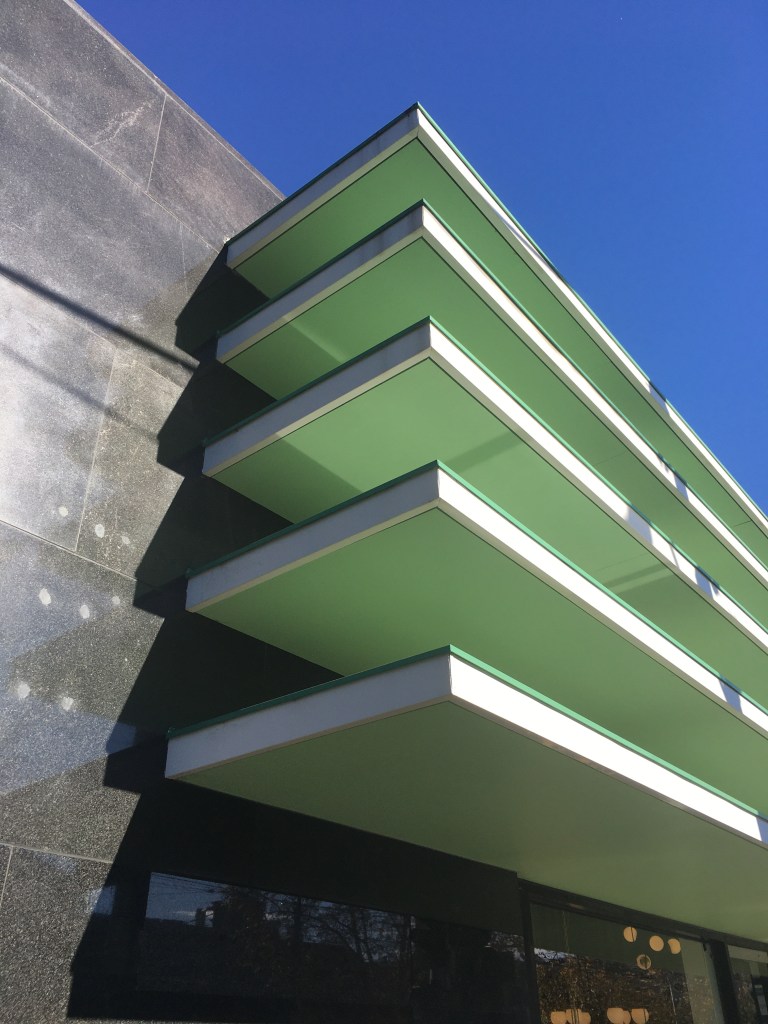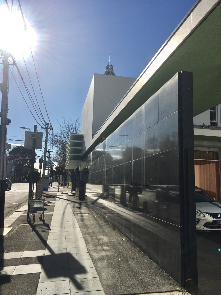 The fabulous #ESandABank, 1959, designed by their in-house architect #StuartMcIntosh, on #GlenferrieRoadMalvern, was (partly) restored early last year. The fins, which had been blue forever and surprisingly made of plywood, have been rebuilt and repainted the original white and ‘mint green’ on the underside, to go with the pink glass. The floating white cube is sandstone, they should have taken off the paint, and the black granite used to have white horizontal lines. And then there’s the missing lowest fin, and most of the rock wall – removed with a permit from #HeritageVictoria, issued the same time they listed it in 1998- I opposed the changes at the hearing, but the owner was there, looked very angry, and said something about ‘my retirement fund’, so they made a compromise, supposedly to make it easier to let, which it didn’t really – now it’s a Custom Lighting, a good use given the interior nature, would be same without the changes. Grrr. They’ve also kept the #CharlesBush abstract sculpture, now a bit hidden. Old images #PeterWille, @library_vic and @nationaltrustvic, sculpture snapped last year by Brendan Cameron.