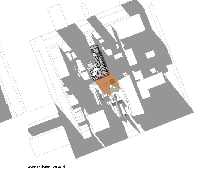 I don’t actually mind the weird shape, but I’d much prefer a setback after the low brick podium, rather than building straight up 10 floors right on little lon, more or less. Also way too much development for a narrow lane, once a charming byway with a jazz club, now surrounded by towers. Architects @fjmtstudio.