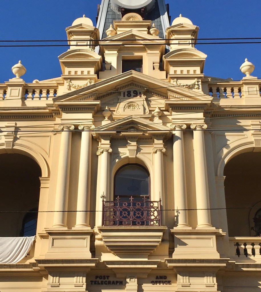 The #absolutelyfabulous #CollingwoodPostOffice; this bonkers #HighVictorian front was added in 1892 to an 1868 building, don’t know why, guess the #PublicWorksDepartment (or someone) thought it didn’t stand out enough ! They even included a clocktower / mansard thing. It really is a very thin front, check out the photo I took in 2013, on my very first Samsung smart phone. The architect for this #RenaissanceRevival/#Mannerist front was #JHMarsden, who had just done the similar but not quite as exuberant #GeelongPostOffice.