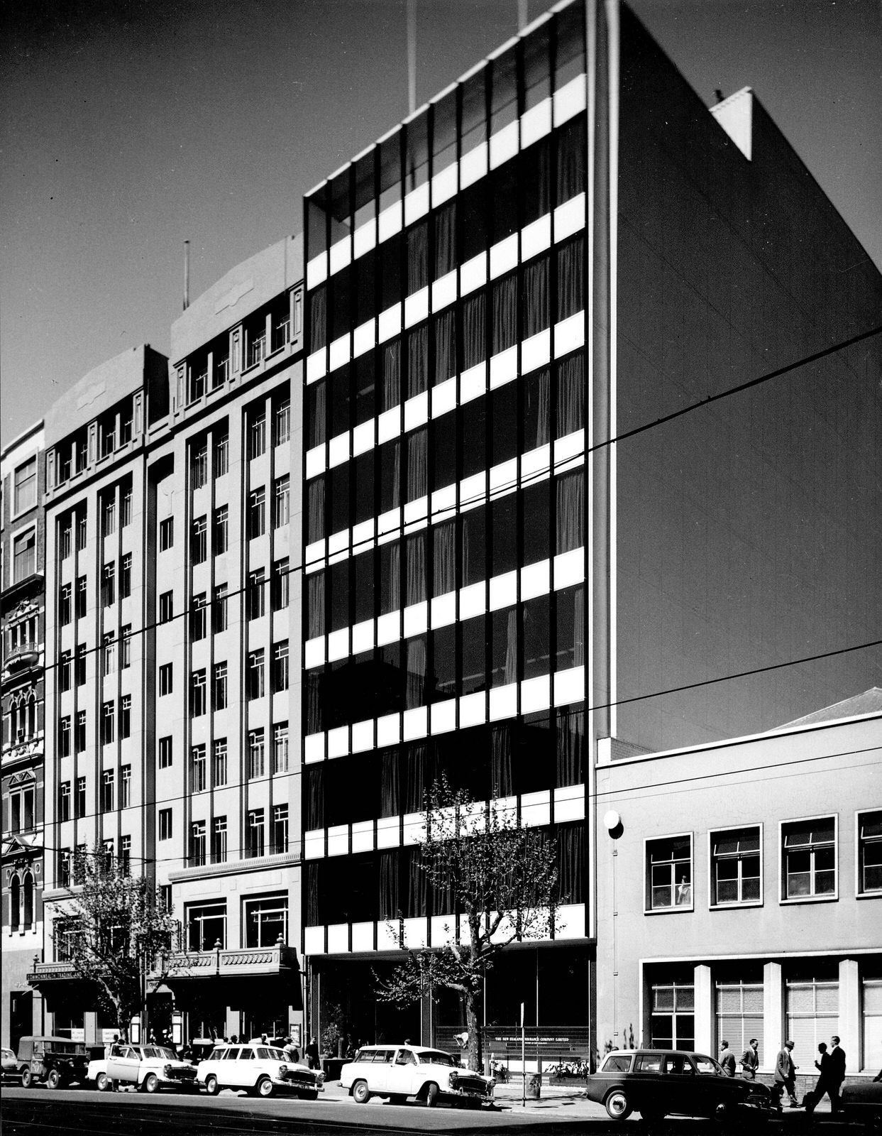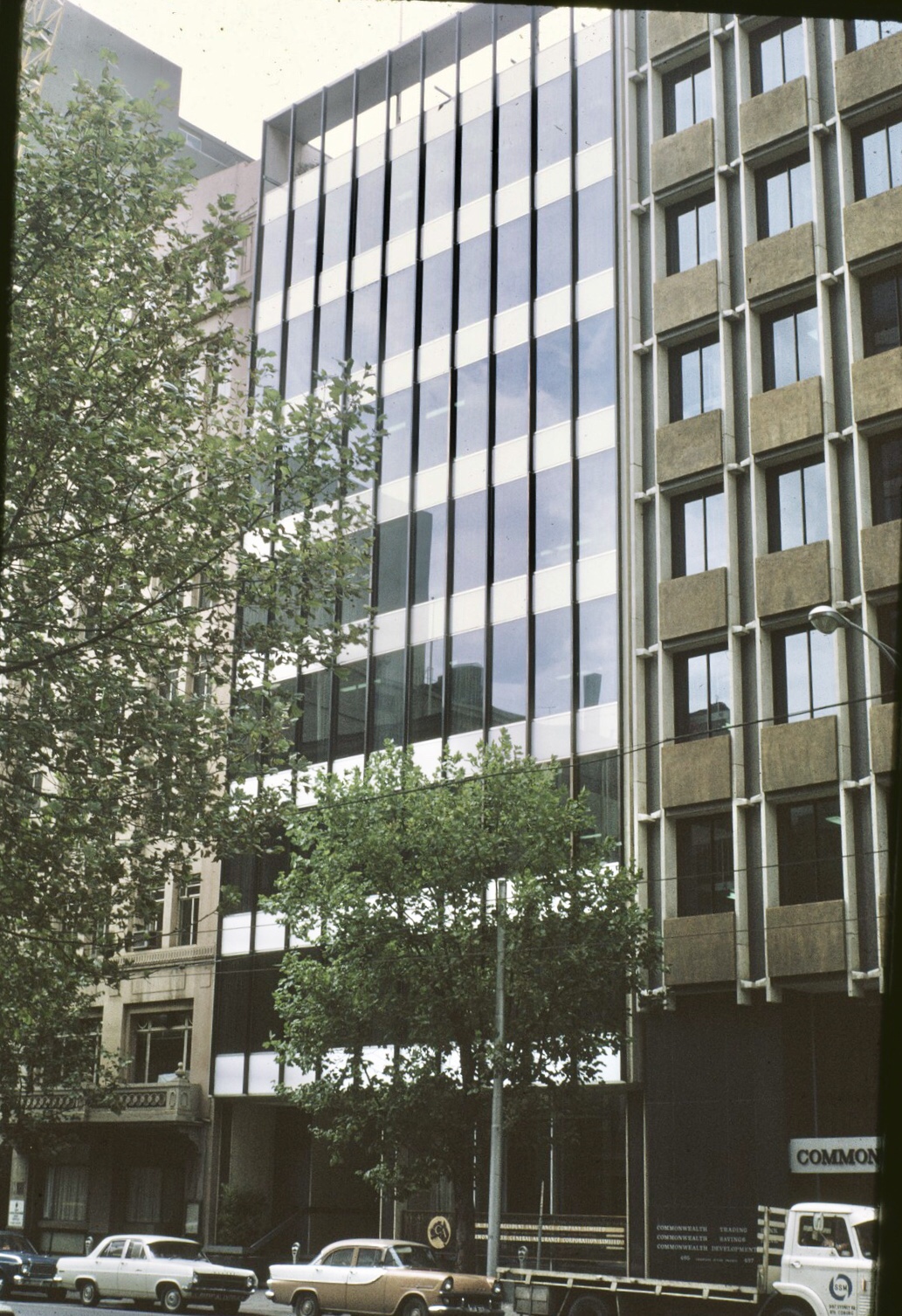 The #NewZealandInsurance Co building in Bourke Street was completed in 1961, and was a rather slick, late example of #glasscurtainwall by #BatesSmartMcCutcheon, who had pioneered them in the mid 50s. Lots of great photos by #wolfgangsievers at the @library_vic, and one later colour one by #peterwille. I think it was demolished in the 80s, with the site vacant for ages until the #RACVClub was built there in 2004.