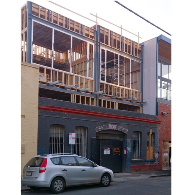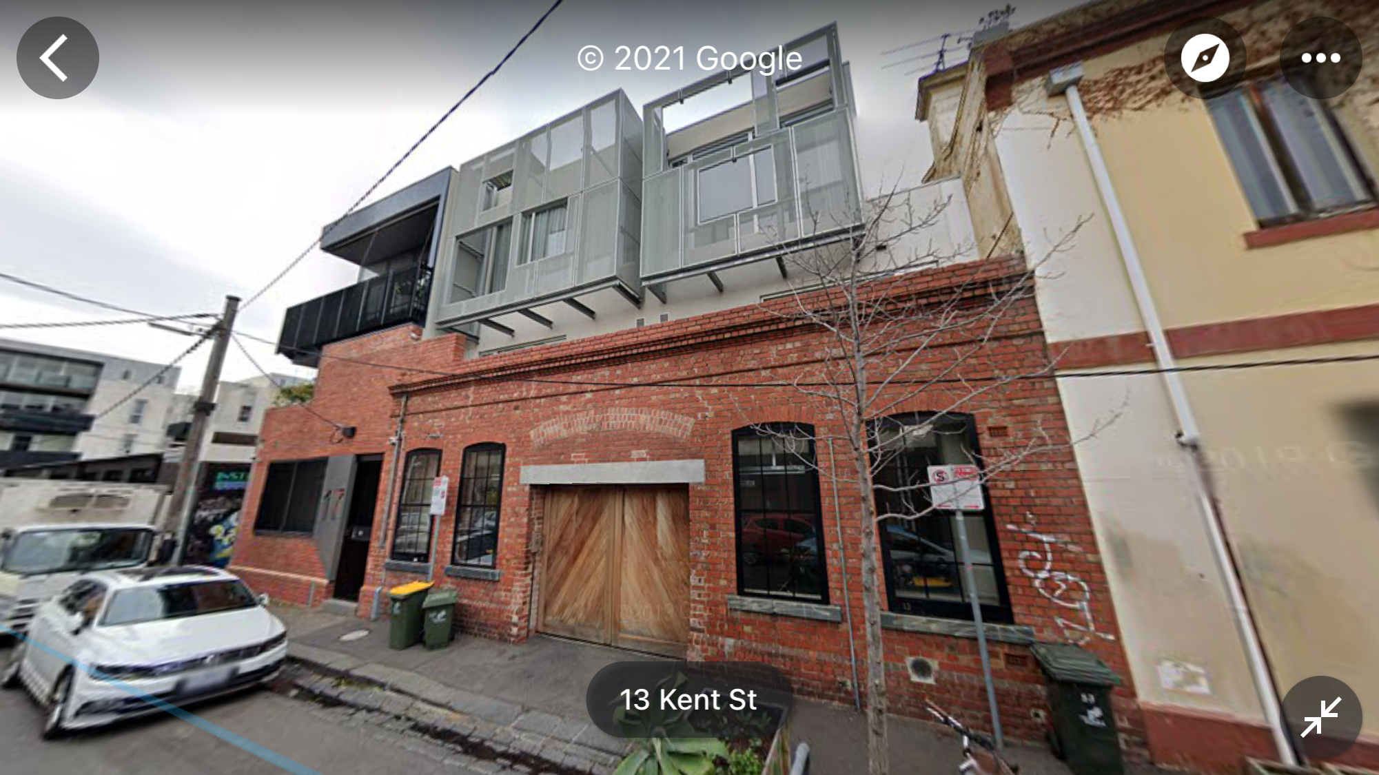 A bit of industrial #facadism I posted this day in 2014! Young Street Fitzroy. And #streetview has it a bit earlier, just a wall (and theres a matching one behind in Kent Street). Makes me think of the olden days when people actually converted factories into houses, very spacious, with timber trusses etc, instead of developers just keeping some walls and filling it with multiple modern units. But when they’re this small is it reasonable to keep more structure ? Or maybe allow building in sympathy right on top of the retained walls ? This is neither, with some setback, but then unlovely mesh poking forward almost on top of the walls. Inside a bit bland all white not hugely spacious, but nice timber lined light well. I’m sure the ground level is now parking for 8 cars. And they didn’t clean the bricks on the young street side.
