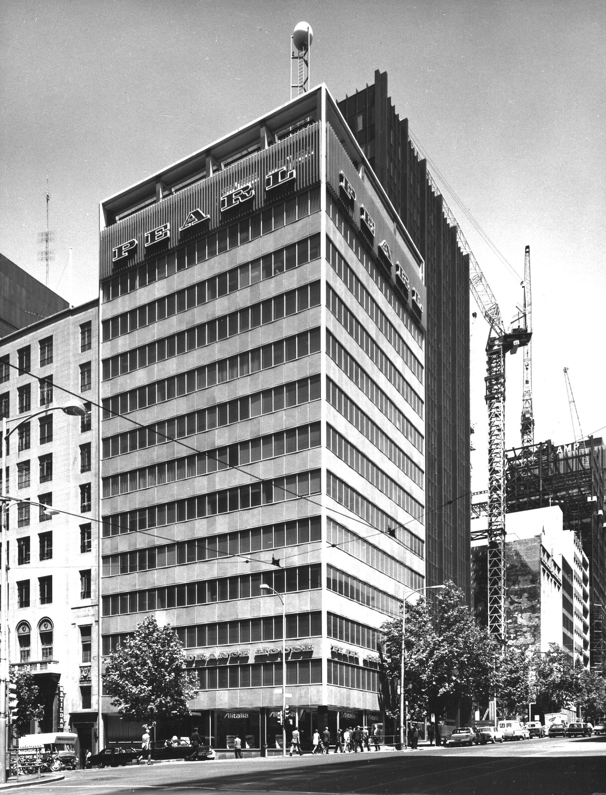 Another #LostModernism office block – Pearl Assurance, cnr Bourke & Queen Street was completed in 1961, and designed by #LeslieMPerrott (later most famous for the Gas & Fuel towers). Nice but not the most outstanding of the mid century curtain wall office blocks. Unusually big and striking signage, and there was also a pearl on top (!). All four corners were rebuilt with 10 storey offices in 1960-62, the other 3 all by #batessmartmccutcheon, one demolished recently, other two still there. Actually this one still there too, under a pretty comprehensive #postmodern upgrade c1990.