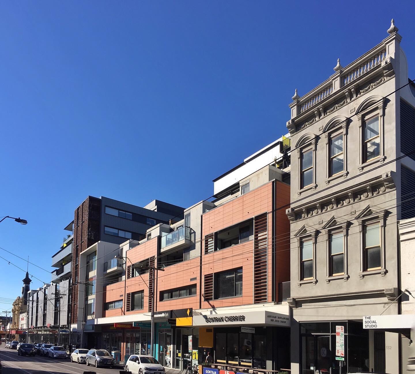 I don’t hate the #SmithAndCo redevelopment in #SmithStreetCollingwood; the #streetscape is appropriately varied rather than monolithic, though it is a bit of a mess really, with taller bits justified by the long lost #FoyAndGibson store. However they should never have got a permit to demolish and rebuild the Victorian facade – I found the 2012 #VCAT decision which noted Yarra Council couldn’t counter their ‘its falling down’ argument. The repro seems accurate, but what I don’t like is that the facade only has balconies behind it, with holes in the sides too! I didn’t like the idea iof such a huge thing when it was first proposed in 2005 (and approved by then Minister Rob Hulls), not built until 2012-14. [2021: but given the scale of other things nearby this is modest ! ] I found someone’s essay from 2010 reviewing inner melbs councils’ failure to reign in developments in the face of various State Governments ever since the Kennett govt pushed density, without any guidelines like height limits, leading to a zillion VCAT challenges – which of course the developers always win.