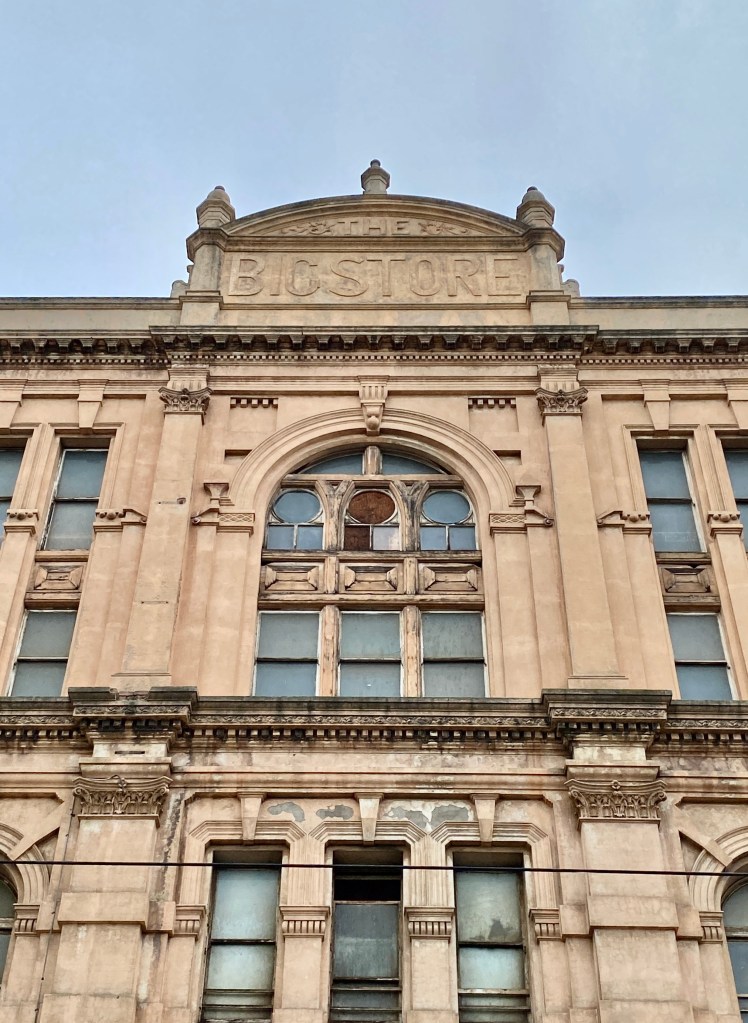Possibly the largest abandoned historic building in Melb, above the first floor anyway. Appropriately but unimaginatively named, ‘the Big Store’ opened in Chapel Street in 1902. Run by Maclellan & Co, related to Foys of Smith Street, it was the biggest department store in Chapel Street, which like Smith Street rivalled the CBD from 1900-1930s. Or maybe not really, because the opening of this store didn’t make the news much, and no mention of architect. It’s all classically inspired but lacking any remarkable features, and with that strong horizontal almost looks like one building placed on top of another. In 1910 they expanded to a building on the carpark site (later a factory, last pic), by the 1950s rebadged as Foys, then closed in 1967, except for the ground floor. The @museumsvictoria have a great B&W of the exterior from the 50s, and two of the interior – it was vast, but perhaps not grand. Viewed from above it’s clearly got a light well in the middle. The rear has a lot of signage too, though I recall it as more intact, also that the top floor of the lower bit to the right was all lead light windows (and others recall that too). Someone told me once it’s owned by the family that own the City of Melbourne building in Elizabeth Street, and they’re just happy to get the rent, rather than sell or redevelop; I just hope they’re keeping the roof in order, or it’ll all just get destroyed, and it looks pretty rusty. Old photos via Facebook, amazing what you can find there.