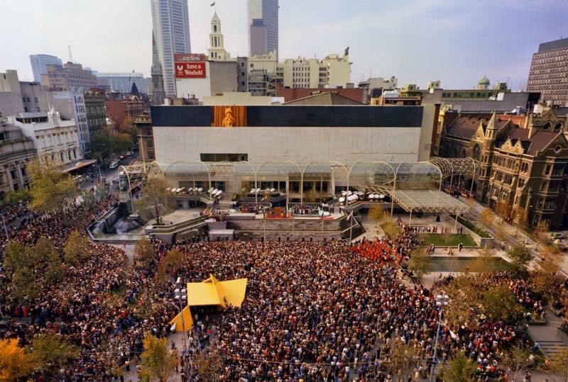 2021: since then square part has been demolished (again) for the #MelbourneMetroTunnel, with a big entrance planned on the north side. I say don’t bother with a new city square, we’ve got Fed Sq now, but jets have some trees and grass on the north and Swanston street sides, the rest can become maybe a series of arcades and lanes with shops and boutique hotels and low rent studio spaces (I’m dreaming !).