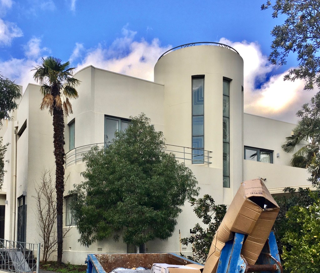 Mon Reve, by fave architect #IGAnderson, 1937, Hampden Road, Armadale. Another one of the few 30s Modernist houses in Melb, though leaning heavily to Art Deco too. Been meaning to see it for ages – disappointing that there was a great big skip and tree right in front ! 2nd image from @geoffreygoddardphotography much better.