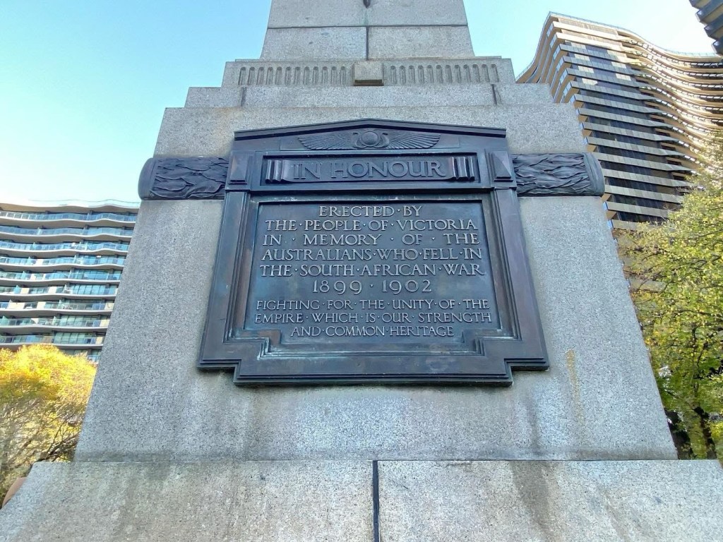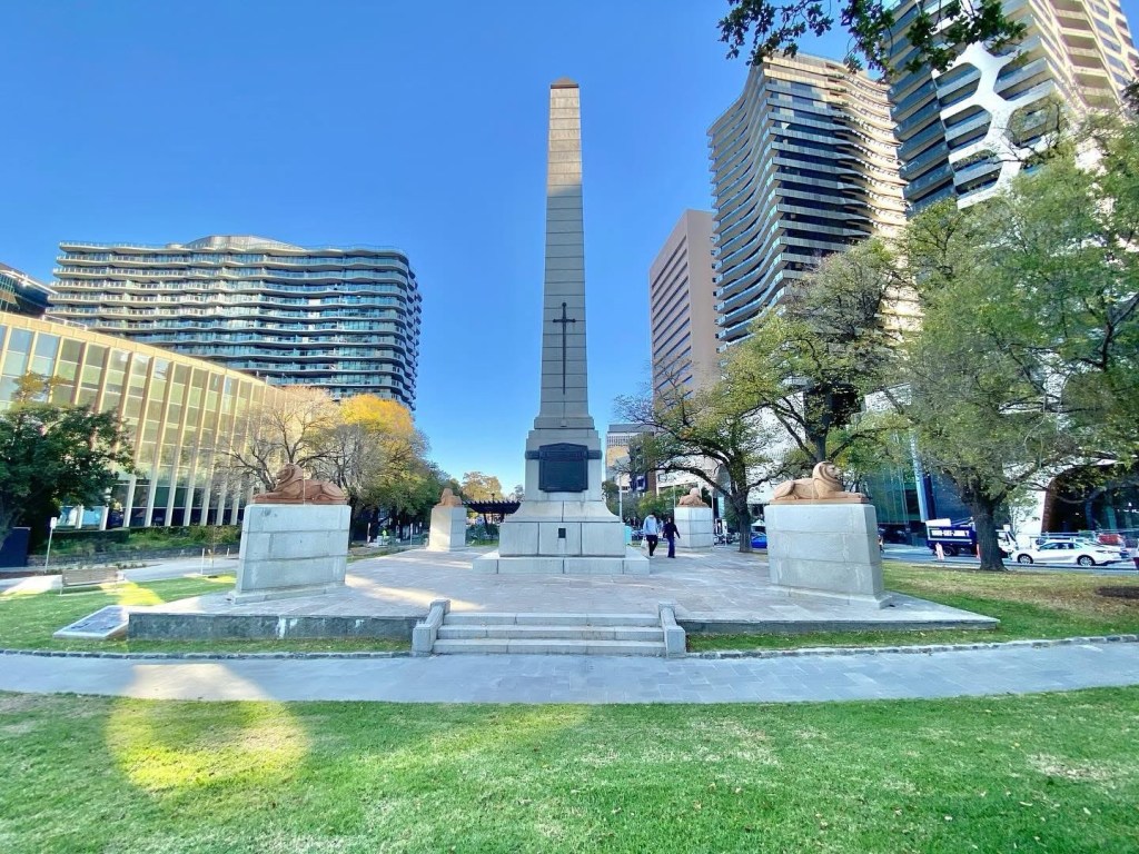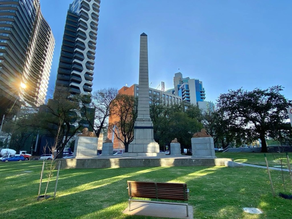 South African Soldiers Memorial (ie #BoerWar), #DomaineInterchange, 1924, #IrwinandStevenson. Thought id document the things that are about to be dismantled or in the case of the trees chopped down to allow excavation for the Domain station for the #MelbourneMetro, which will only take 10 years. And then replant some saplings, I mean juvenile trees. And put the memorial back behind stairs to the station. I’m not saying dont do it, but maybe not chop down so many trees? Or start growing the new ones now ?