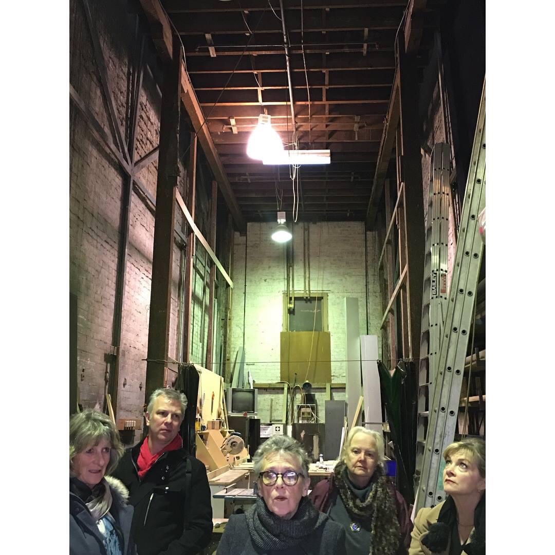 you’ll never guess what’s in here ! It’s called the ‘#PaintFrame’ at #HerMajestysTheatre, sticking out from the side – a fabbo very tall thin structure in which whole theatre backdrops were painted by scenic artists, some on the floor below, getting dripped on by those on the floor above; the backdrop was put on a huge counter weighted frame, so it could go up and down for easy access (it was then folded up for transport to the stage). This is the only one left in Australia, was added in about 1900 to the 1886 theatre, and is unused but on the #victorianheritageregister, so it should be safe.
