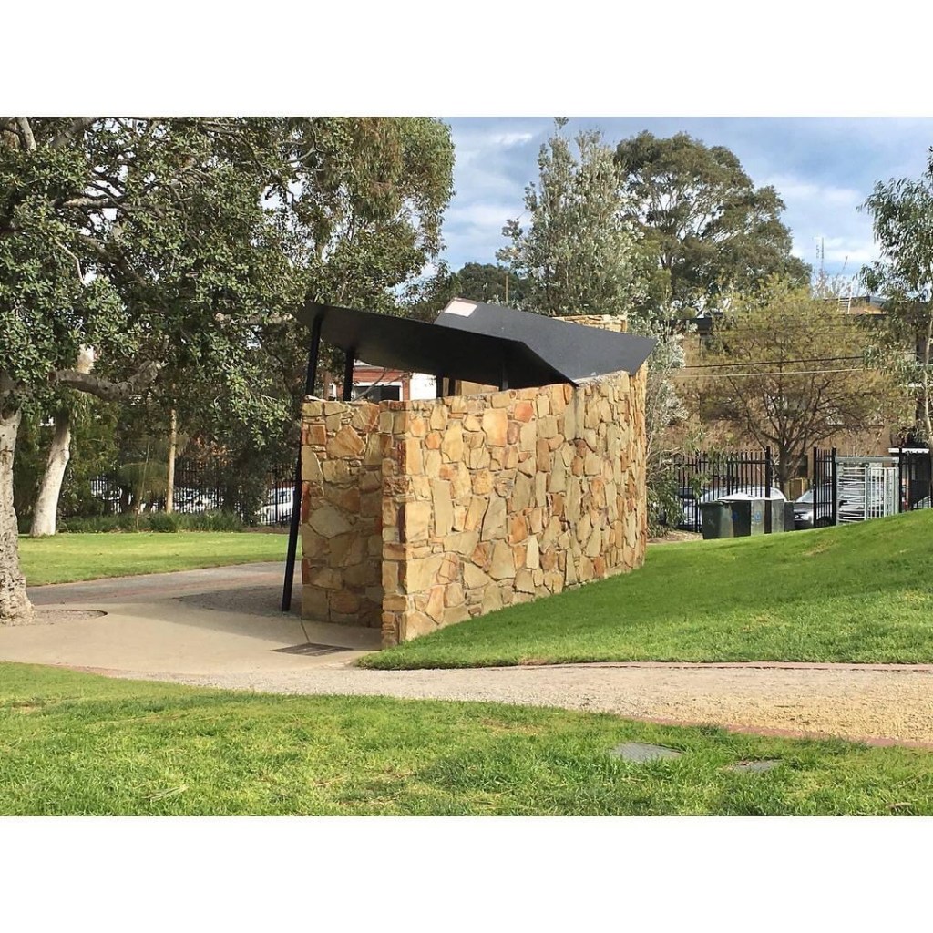 #PublicToilet as rustic sculpture, one of the best things @WoodMarsh ever did; #ladies have the curved roof, #gents have the square block. #StKildaBotanicalGardens, 1993. First three pics 2024