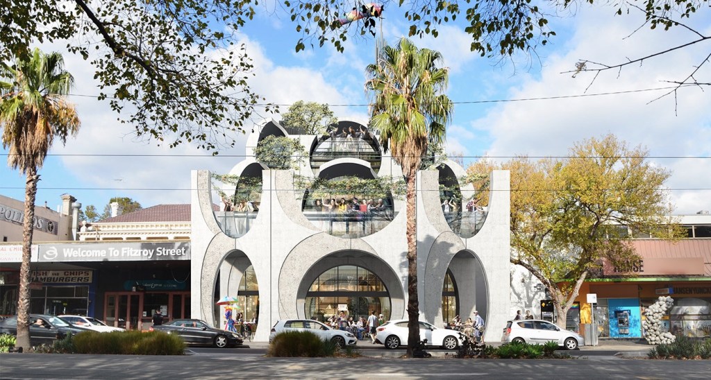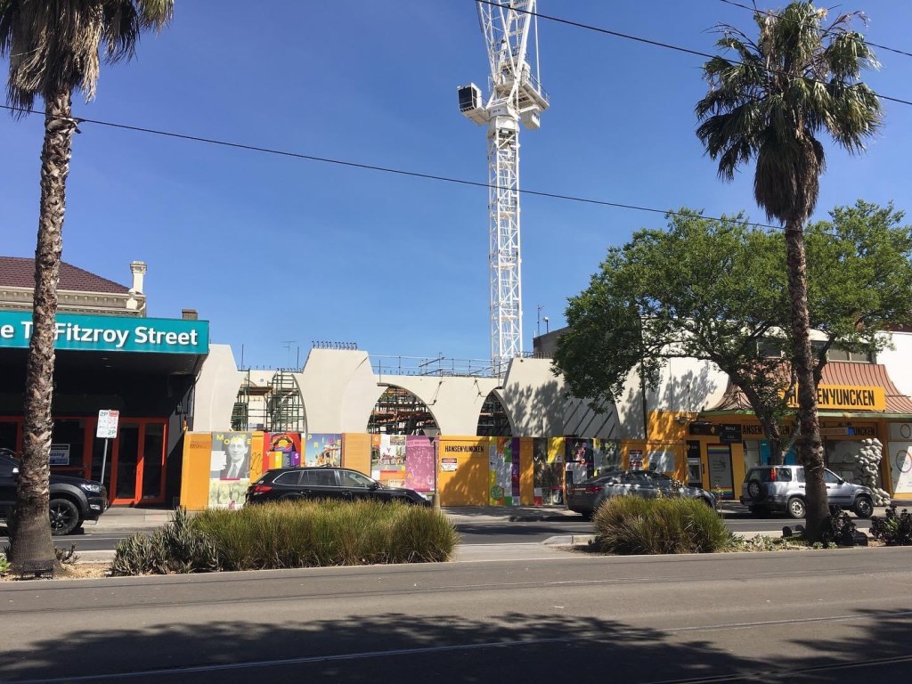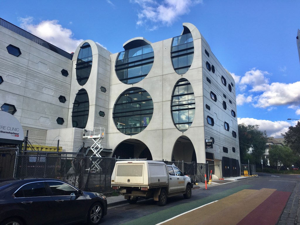 The #VictorianPrideCentre is finished ! Or at least opened, I havnt been in yet – I took these photos last week. The design, by @grantamonarchitects and @bauarchitects.urbanists, doesn’t attempt to represent LGBTQI in some obvious way (thank goodness) but instead the exotic style of st kilda, as seen in the arches, re-interpreted as circles and ovals (which it must be said brings to mind certain human orifices, which would make it frankly sexual, which I think makes it more interesting and appropriate actually). I was worried about the massive scale, and it is big in the street, but with the leaning back, it’s not so dominating. I also didn’t like the way it builds right out over the footpath, but it certainly fits the design, and I guess the street is wide enough to cope (though not sure the street should be lined with such structures). There will be great views from the all the decks, and a rooftop bar (yay!) but one day someone will build something equally big where the ex-bank is on the corner, getting somewhat in the way. I’ve taken photos from just before construction, seeing it rise bit by bit.
