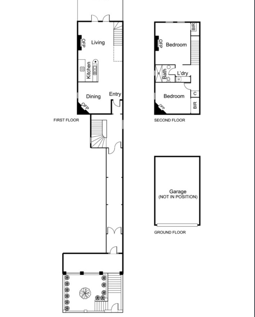 Behind the chunky bricky balcony the Victorian details are still there, like the fab rear stair, seen in various real estate ads. A comment on my Instagram tells me that they were bought by a family in the late 80s, renovating one for themselves, as a single 6 bed house, the other as 4 flats.
