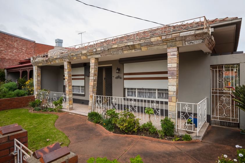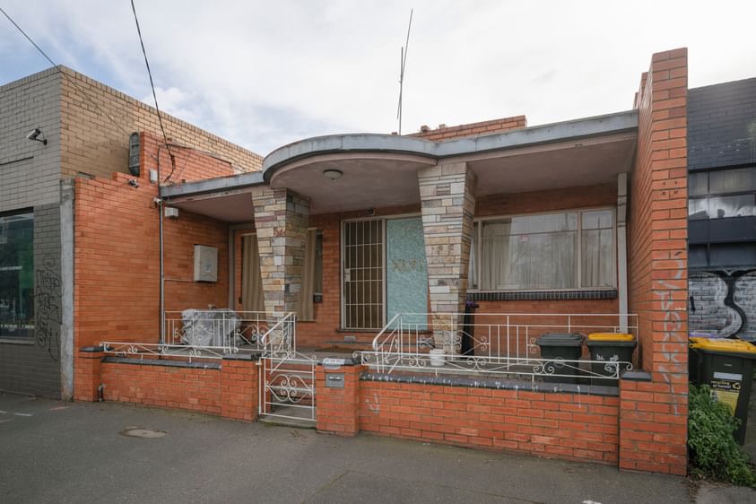 Probably a 1960s #renovation of a #terracehouse perhaps by an Italian immigrant concreter but who knows ? Looks like made of leftovers from an office block or shopping centre. Definitely #featurism, as #robinboyd would say. I love it. Graded ‘non contributory’ in the heritage precinct, but to be fair that’s all about Victorian and Edwardian terraces. Update 2024 : if it was a terrace house not much left, part of the roof is flat ! Side walls look maybe Edwardian red brick. Some real estate shots of inside from 2015 show typically migrant huge kitchen, tiled floor, and maybe a 1910s picture rail.