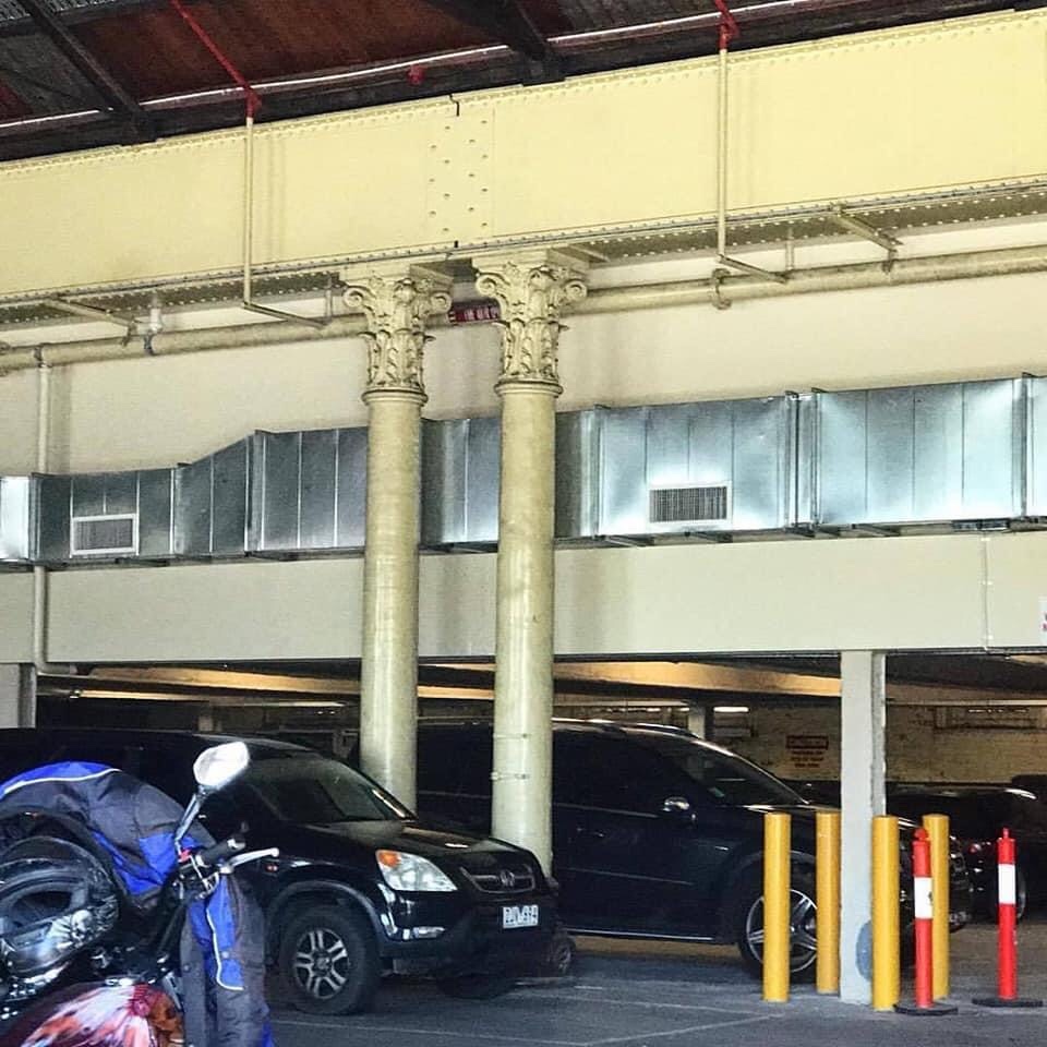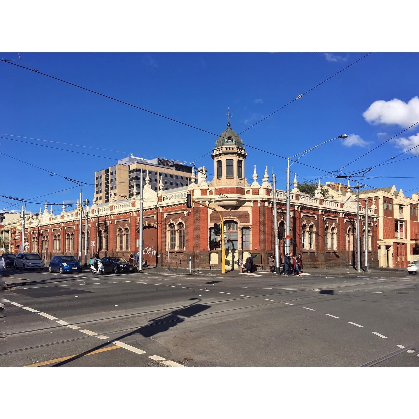 The #cabletram #enginehouse on the corner of Nicholson & Gertrude Street, with that cute but rather precarious corner oriel/tower room, a #signalcabin, where a man must’ve sat for hours making sure the Clifton Hill trams went round the corner, and the North Fitzroy trams went straight ahead. Required skill and timing since the #cabletrams had to get up some speed and then let go of the cable to do the corner, since the cables didn’t do curves. Also strange to think this place had huge steam engines and a boiler and a chimney puffing smoke, but it did. Designed by the tramways architect #AlexanderDavidson, and built 1887, it’s a curious almost naive eclectic thing, with #polychromebrick with features drawing from Romanesque, Italianate, Flemish and his own imagination. Note the annoying concentration of fat modern #trampoles, they could’ve attached the wires to building. Current use is the tram control centre I believe, or maybe disaster control, whatever that is.