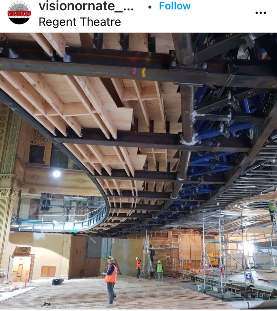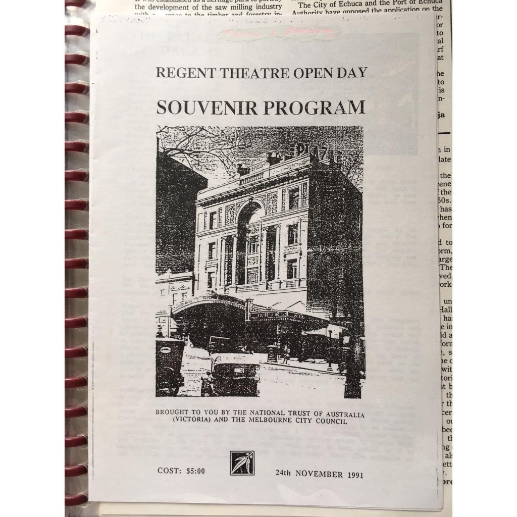Something from the archives : a photo of the interior of the #RegentTheatreMelbournd in Nov 1991 from Trust News during a @nationaltrustvic open day, revealing something few had seen for 20 years – for which I prepared an info brochure, learning all about 1920s #PicturePalace history in the process. I remember hordes of people, and dust, and how it was just cavernous ! Only a couple of years later #DavidMarriner did a complicated deal with the #CityOfMelbourne and State Govt involving the #CitySquare as well, and at least we got the theatre back, with a pretty complete restoration where: “Every inch of the interior is treated by scumbling; using a transparent oil and wax glaze, coloured to impart either a translucent result or near opaque finish for strength and structural detailing.”, the work and photos from @mulhollandrestorationanddec, completed in 1996. Always been annoyed that the speakers and stage lighting were a bit intrusive. And yes it’s currently being done over again, various things refreshed, bars enlarged, and moving the front of the balcony forward 3 rows, which can be done without it looking any different, to be completed next year for #MoulinRougeTheMusical.