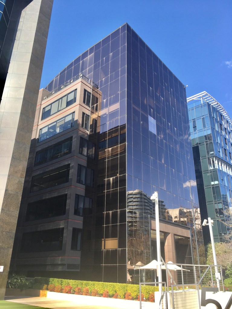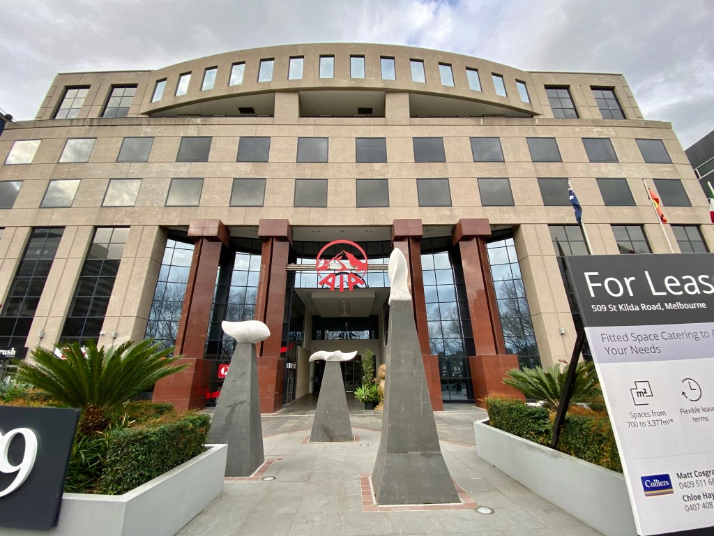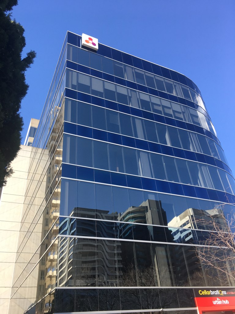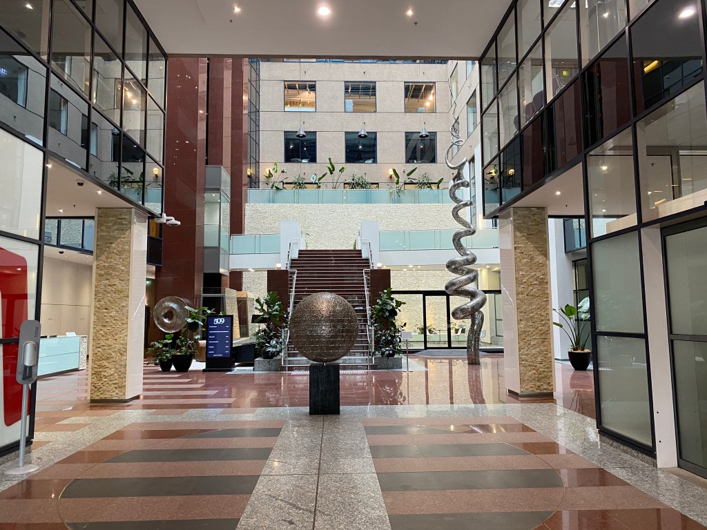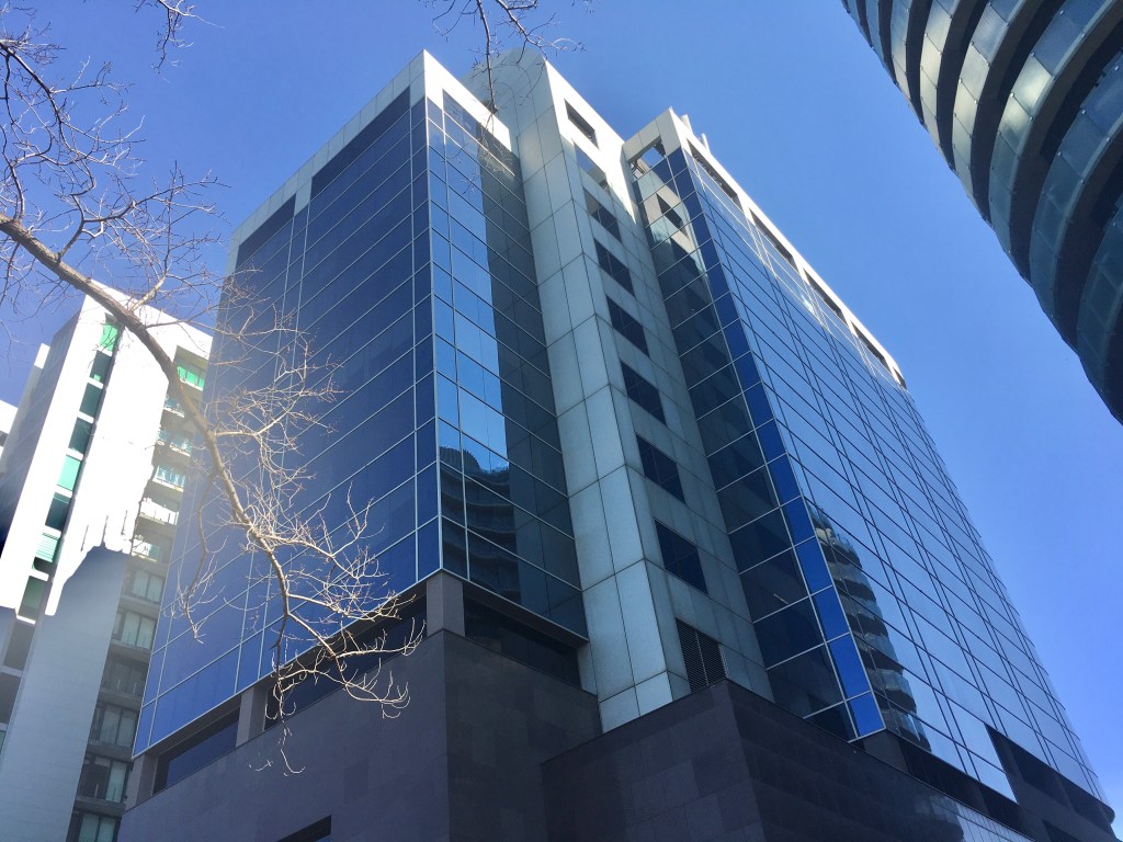 Originally Norwich House, found a 1989 article – it was built 1990, designed by Godfrey Spowers, for the eponymous insurance company, which was absorbed into the NAB in 2013. It’s a bit stolid, in beige precast, with a kind of huge bay window on top. Nice sculptures out front, by Akio Makigawa, and a surprisingly big atrium. A double block makes for big floor plates. Sold to a Chinese investor in 2018 for … $163 mill.