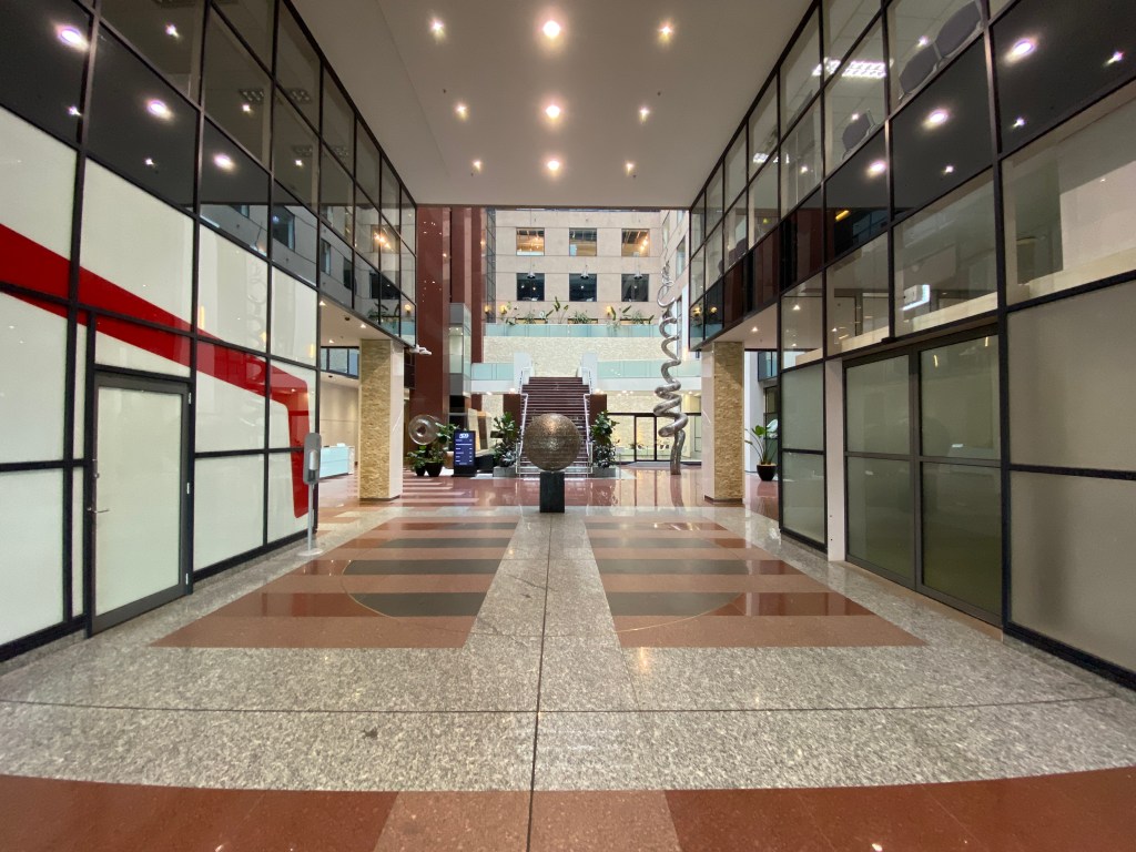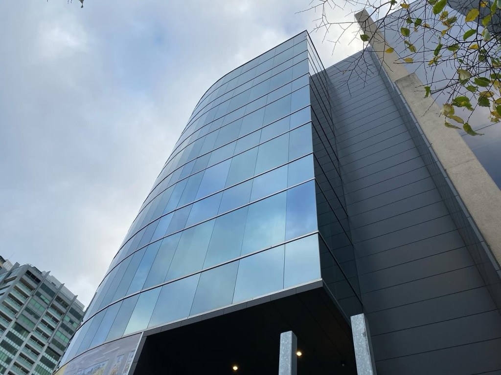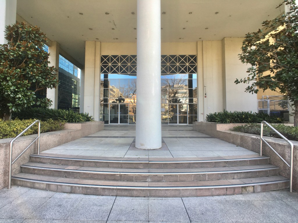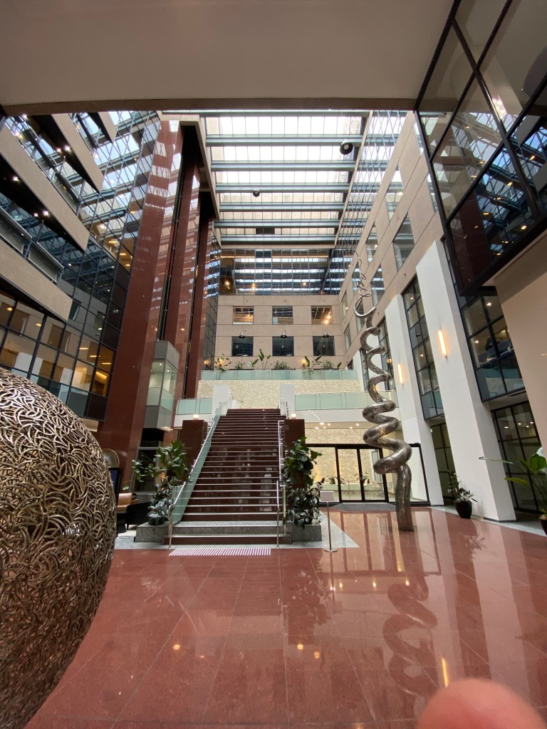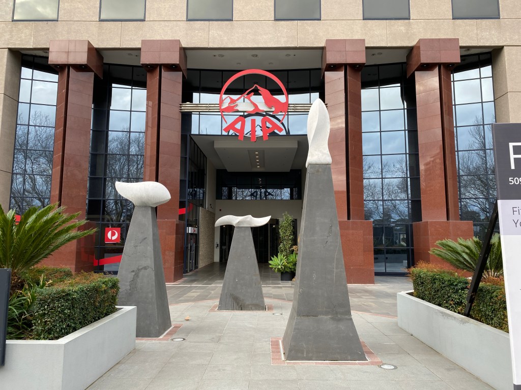 Originally Norwich House, found a 1989 article – it was built 1990, designed by Godfrey Spowers, for the eponymous insurance company, which was absorbed into the NAB in 2013. It’s a bit stolid, in beige precast, with a kind of huge bay window on top. Nice sculptures out front, by Akio Makigawa, and a surprisingly big atrium. A double block makes for big floor plates. Sold to a Chinese investor in 2018 for … $163 mill.