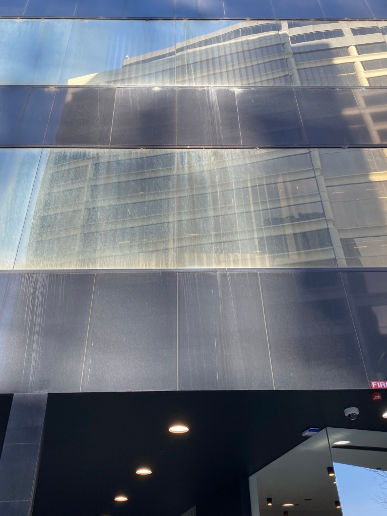 Another of the many Postmodern office blocks built in#StKildaRoad, 1985-91, this one really more #latemodern, which is defined by slick, taut #curtainwalls. Simple but effective, two shades of striped #mirrorglass wrapping round a corner, complete with some #publicart by Japanese Australian #AkioMakigawa. Originally the Dunn&Bradstreet building, but don’t know date or architect. Unfortunate new entry canopy, I mean why not at least a slim profile ?