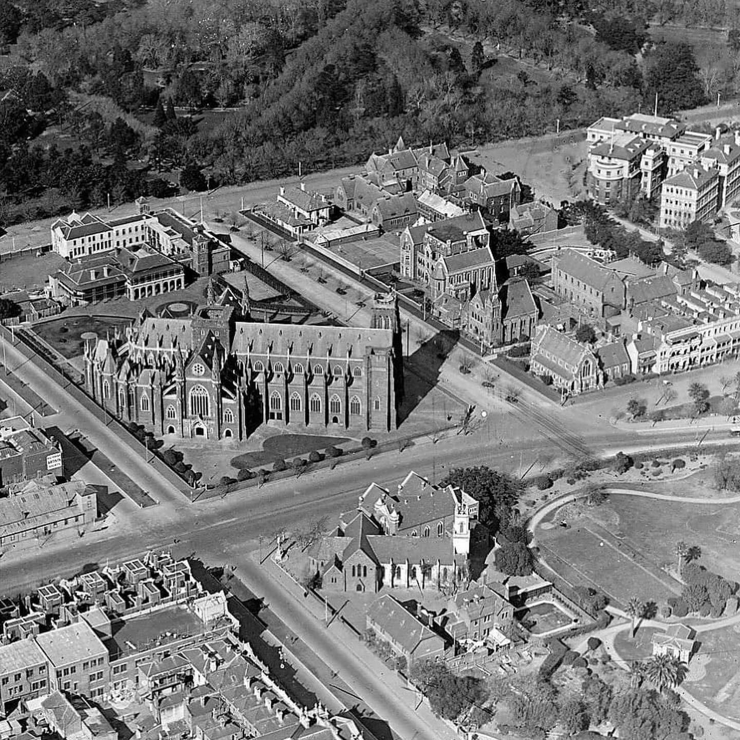 A c1972 proposed government office building just after they had purchased #tasmaterrace, and intended to #demolish it. The Catholic Ladies College and Unitarian Church behind Tasma had just been demolished, and so had St Patrick’s College behind the Cathedral – which it would have totally it would have dominated even the cathedral. Earlier aerial from about 1920, I don’t remember where I got the tower block image from, perhaps @nationaltrustvic files ?