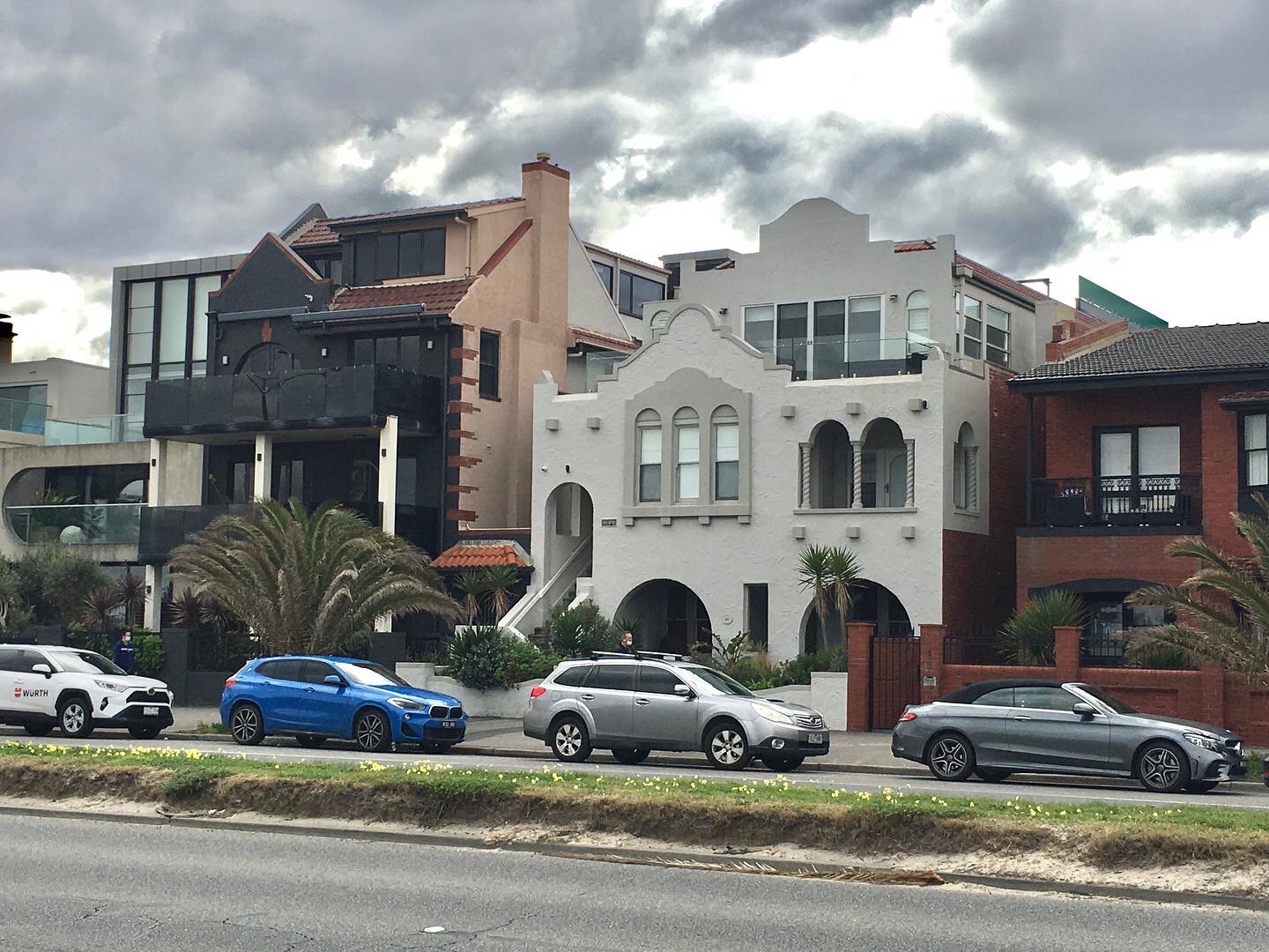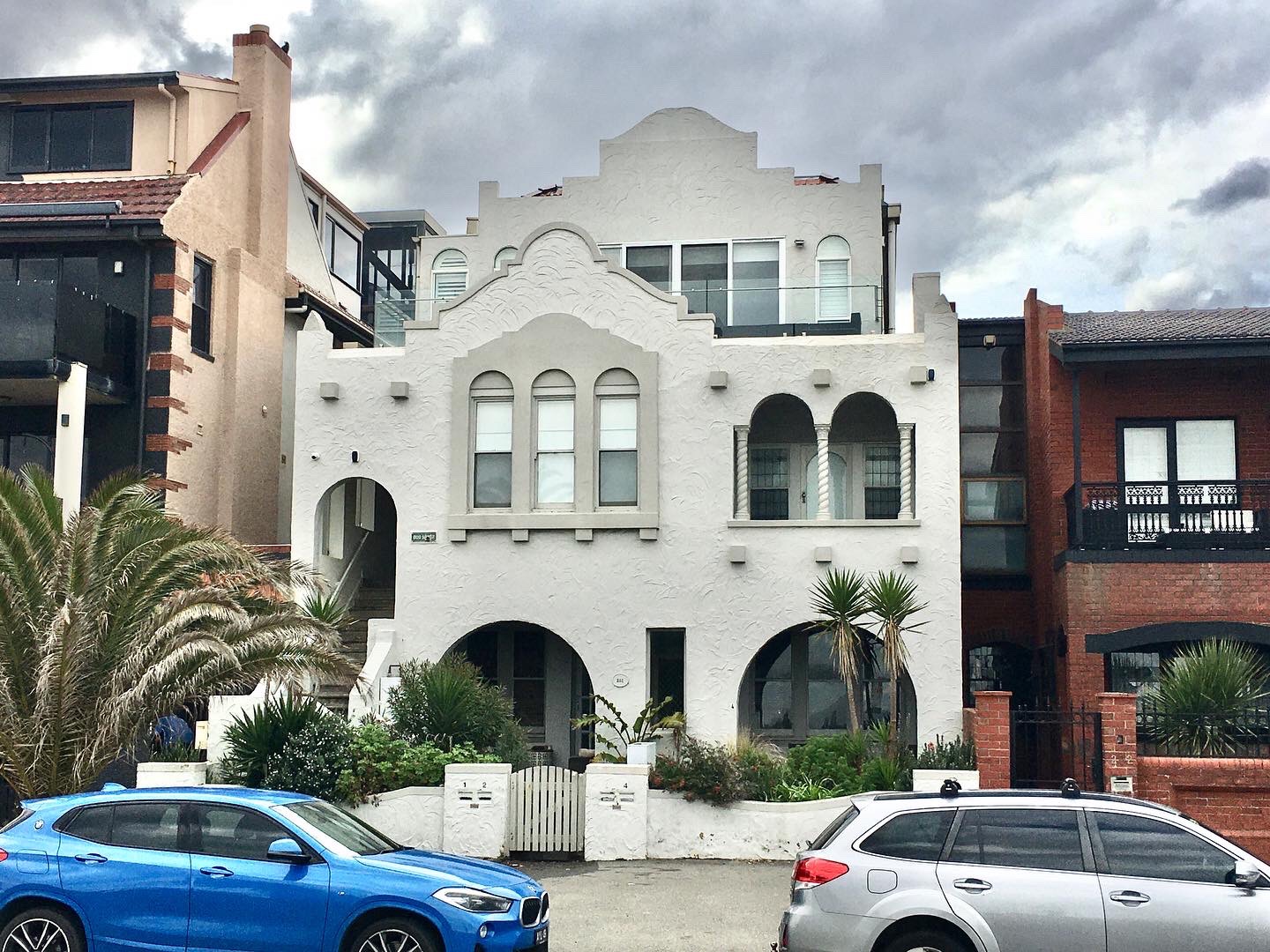 A nice probably 1930s set of #SpanishMissionStyle flats in #BeaconsfieldParade – at least they would be nice if not for that clunky added ‘matching’ floor. Seems to have happened just after 2010, found a before image. Don’t know how it was allowed, since Port Phillip #heritageguidelines say additions should be under a line taken from the opposite side of the street (or under an 18* line in diverse streetscapes and the design is ‘contextual’). Seems completely rebuilt with more flats than before, some interior details retained – and a penthouse with views, you can see how much pressure there would be. But this one better if it was flat roofed and dark coloured. And what the hell happened next door ?? Only big applications actually go to council meetings so we don’t know what officers are thinking.