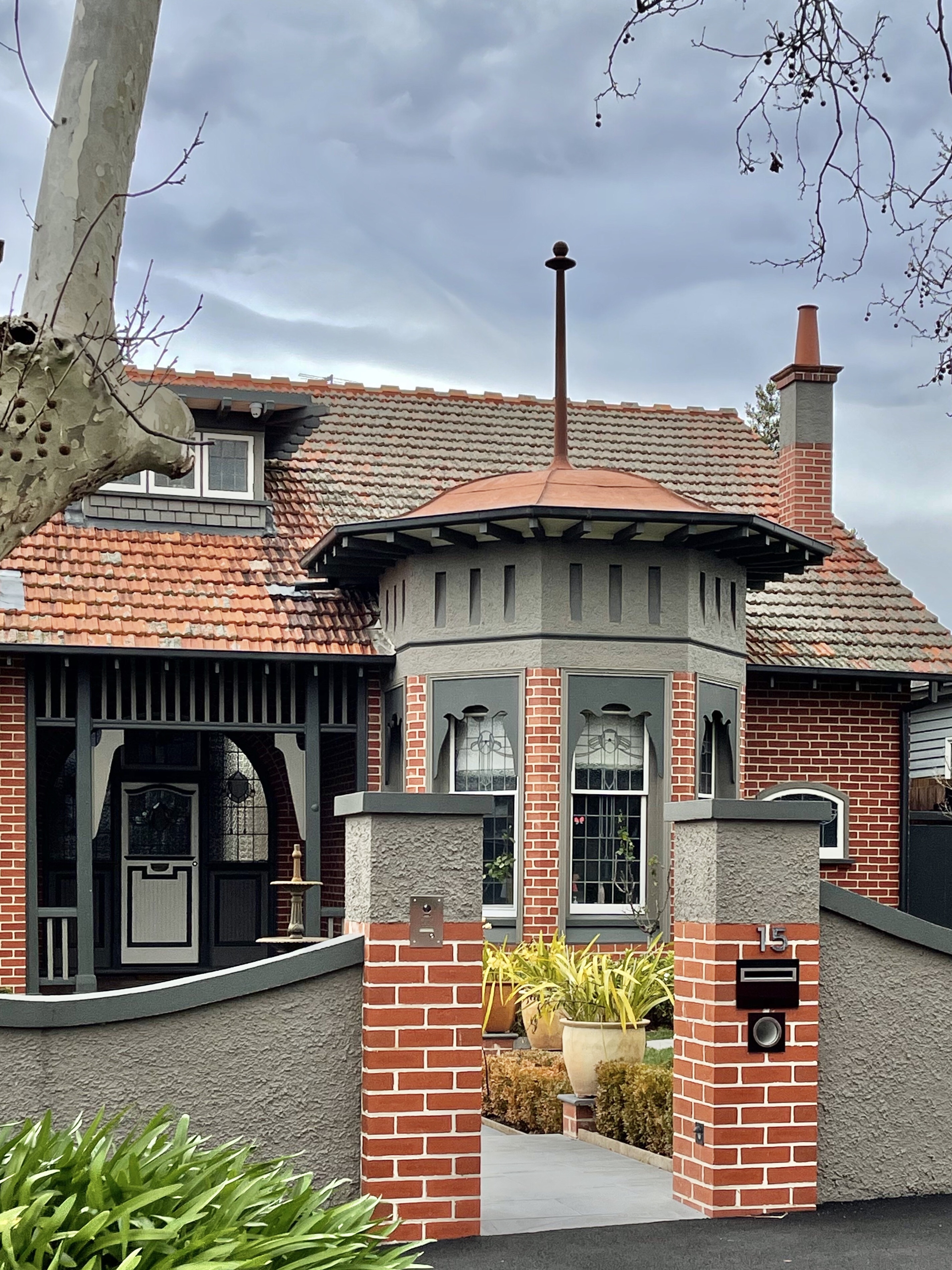 A lovely house follower michael Barrett just sent me, in Hastings Road, East Hawthorn. He thought it might be #RobertHaddon, and it might be, or might not, the very cute domed pavilion is his thing, but other than that it’s very much #Arts & Crafts details you might see anywhere. A style that’s also called Post Federation for want of a better description, it’s Edwardian morphing towards the 1920s Bungalow during the 1910s both sides of WW1. Great interior pics from 2014 (before it went grey on grey), and perhaps lucky it’s still there, doesn’t seem to be #heritagelisted.