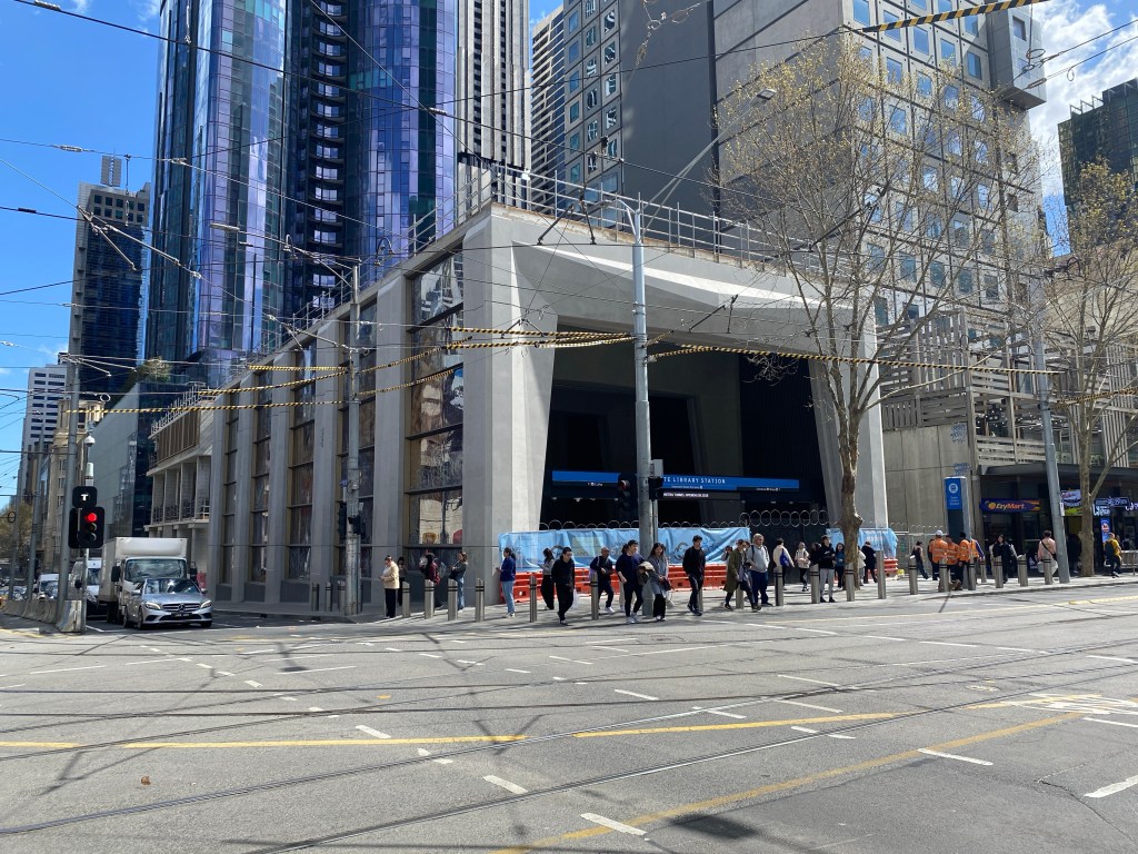 The giant 90 floor Aurora by @elenberg_fraser at least has nice curvy lines, but that’ll be covered up soon by something that looks exactly like a stack of IKEA baskets, built over and next to the new metro station entrance. It’s an office tower I think under way already, designed by @hassell_studio, and optimistically called State Library Exchange. The guff says “this innovative mixed-use hub offers sustainable and flexible workspaces across 10,000 sqm of commercial office space. What sets the SLE Tower apart is its proximity to existing campus areas and educational institutions, making it an ideal choice for education partners and universities seeking a collaborative and vibrant environment.” Or just any old office use.