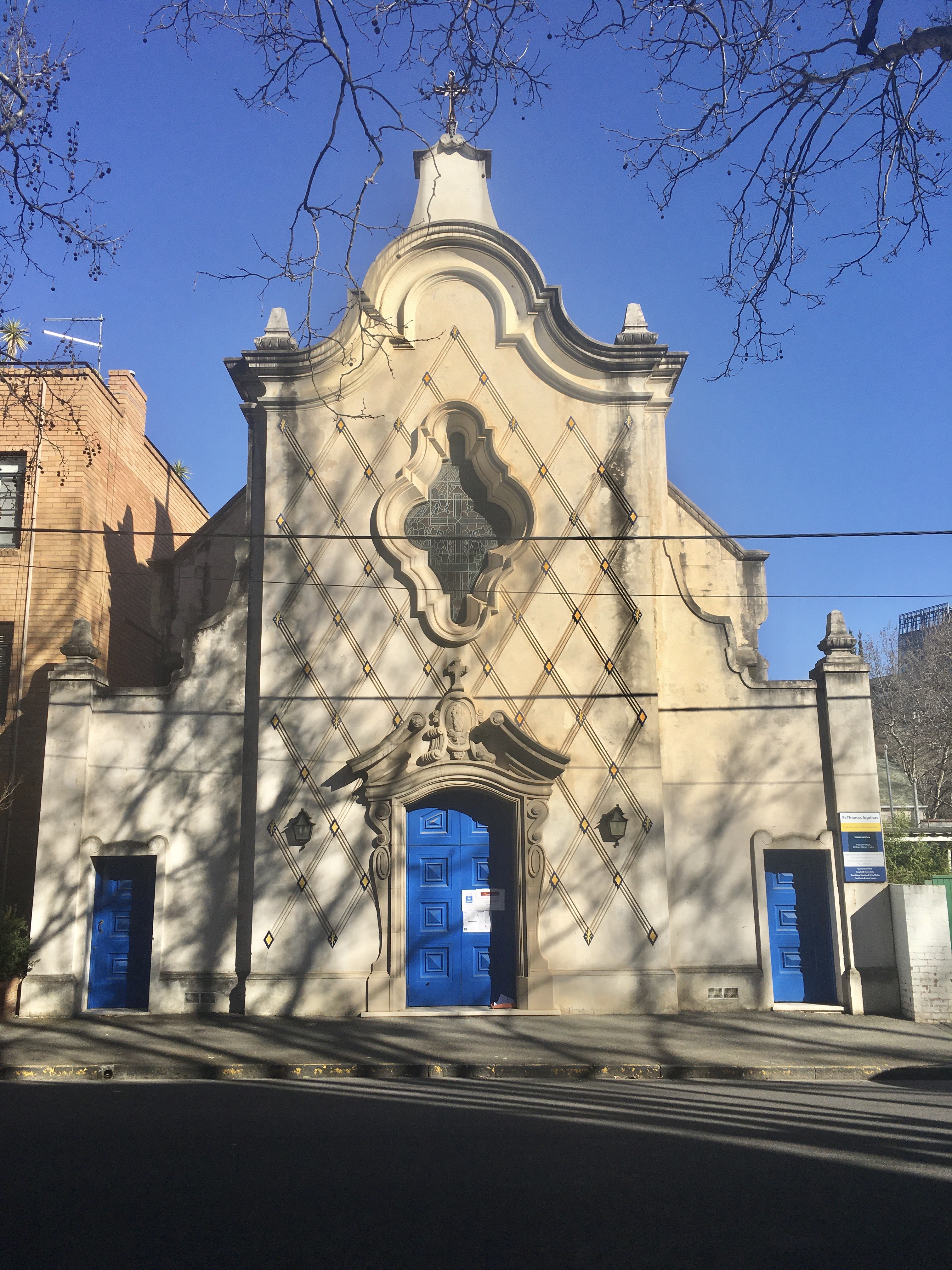Looks like 18th century Portuguese #Baroque, but it’s 1954 #BrombyStreet #SouthYarra ! A donation to St Thomas Aquinas, a little 1915 Chapel-of-ease, led to this extraordinary new front (the interior wasn’t changed). It was designed by #TGPayne, looks like he had fun ! And not influenced at all by any of the modernist churches just then being built.