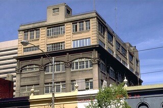 Looming up behind the #SwanstonStreet shops at Little Lon is this beast, in Drewery Lane, a landmark related to cigarettes, concrete, and Melbs Jewish history to boot. Built in 1910 as another part of the #SnidersAndAbraham Tobacco empire, where they already had two others next to this one. Built using the Turner ‘Mushroom’ conc system, named cos it involved thin slabs and big octagonal mushroom-head columns. Designer was Hugh Ralston Crawford, who gave it a flourish with those Celtic /Art Nouveu capitals. The top floors were added in 1938, and another added in 1995 when it was an early residential conversion. I knew about it early and was tempted, but glad I didn’t buy one cos they were (then) overpriced, and I’m sure the city is even more noisy than it was in the late 90s.