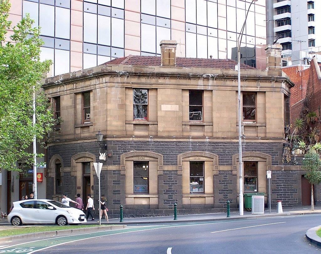 The #LawrenceHouse built in 1860 in Queen Street near the #QueenVictoriaMarket has seen better days – when I took this in march, clearly the stone of the #cornice was flaking off and probably had more knocked off before it fell off- and it had been empty at least a year (it was melb’s first #catcafe before that). It’s a great piece of #MelbourneArchitecture, solid #sandstone panels with deep reveals over a #rusticated #bluestone base. Presumed to have been designed by the owner/builder James Lawrence, who was a #stonemason.