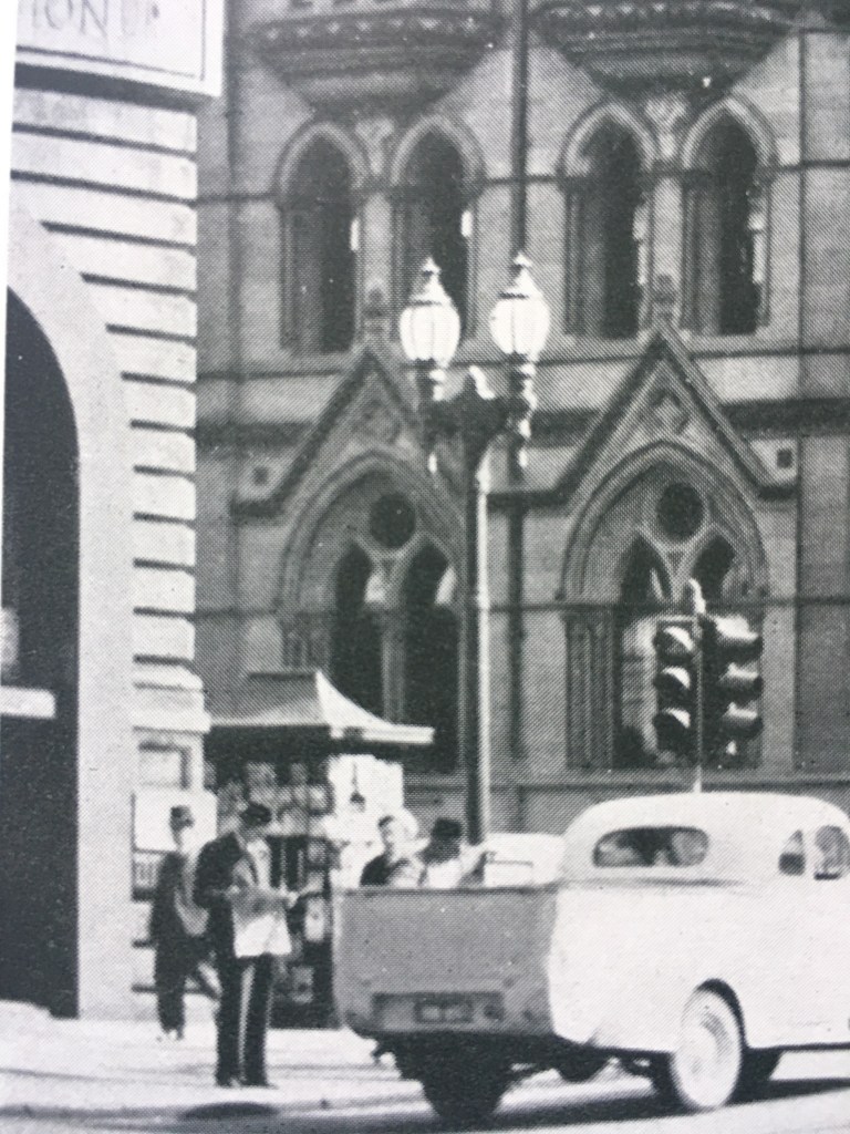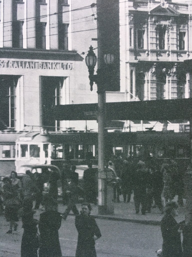 I thought Bathurst too, but no they were installed in the 1930s, maybe they ordered from us ? Bought the same design ? Which in turn is very similar to some street lamps in San Francisco and Los Angeles. Old photos all from Jack Cato’s Melbourne A Portrait, 1949.