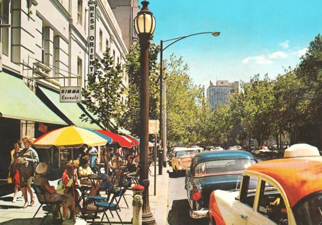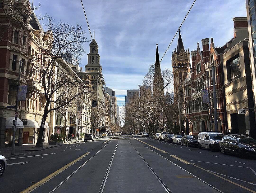 View from the #CollinsStreetHill, framed by low old buildings and equally low modern infill podiums – so this view hasn’t changed much since 1939, except for the skyscraper shadows and the trees have grown a lot. 2021: added various old similar views.