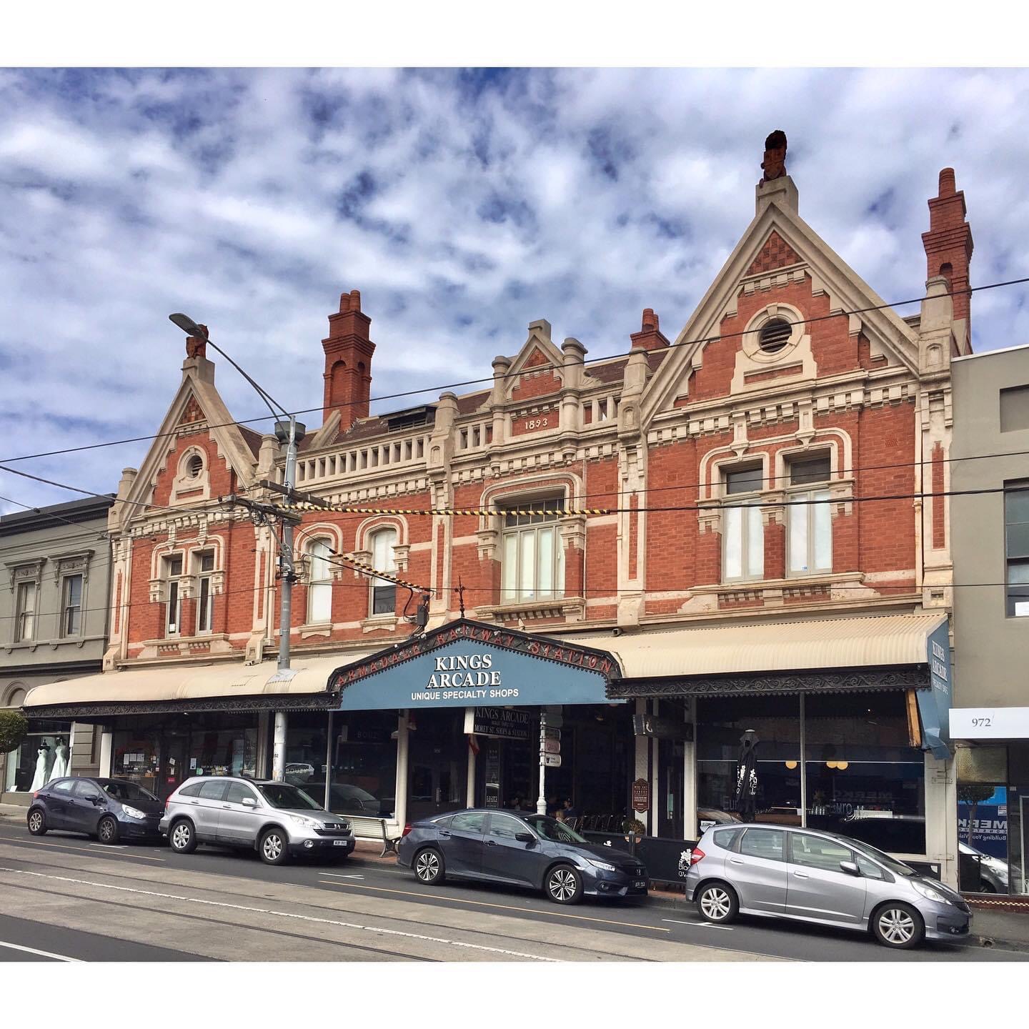 #KingsArcade, #HighStreetArmadale, 1893 or is it ? Just learned the shops were built in 1893, with a walkway through to the station, then the shops lining it to create a proper arcade didn’t happen till 1923. At first called Armadale Arcade, it’s now named not after the King but the King family, who had fruit shop, bought it, then put the arcade though, with all those lovely #leadlightwindows. And still own it. The original facade is nice too, which the @nationaltrustvic describes as “an interesting, though less than masterly variation of the red brick Queen Anne Style.”